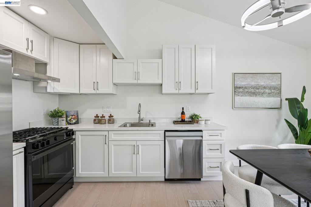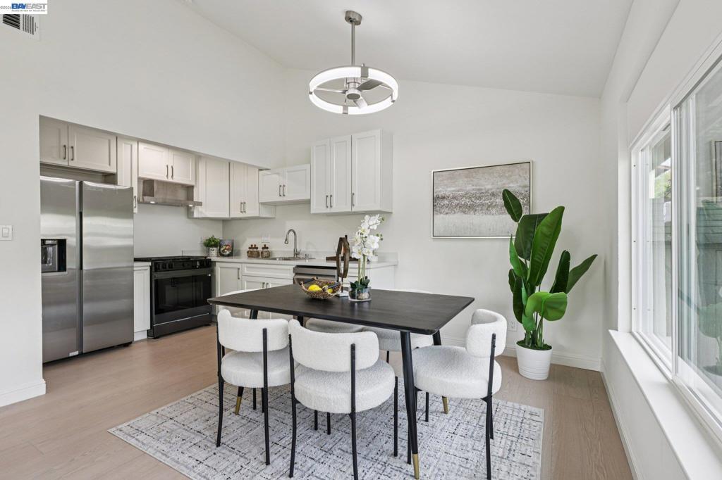 Rarely available single-story townhome, no one above or below! This 2026 renovated home features high ceilings in the living room, and a bright, inviting floor plan for comfortable living. The fully remodeled open-concept kitchen seamlessly connects to the dining area, showcasing sleek quartz countertops, all-new cabinetry, and new appliances including a 5-burner gas stove, refrigerator, and dishwasher. The completely renovated primary bathroom boasts a modern walk-in tiled shower with a glass enclosure, while a newly added half bath provides extra convenience for guests. Brand-new Jeld-Wen dual-pane windows throughout, a new oversized patio door, and storm windows deliver improved energy efficiency and abundant natural light. All-new flooring throughout, fresh paint, and contemporary LED lighting create a bright, stylish atmosphere from room to room while giving an enhanced modern appeal. Newly installed exterior venting ventilation in the kitchen and both bathrooms ensures superior air quality, and additional attic insulation promotes year-round comfort. With two spacious beds, 1.5 baths, and an inside laundry closet, this move-in ready home is ideal for low-maintenance living. Walk to restaurants, shops, short distance to historic downtown Pleasanton, and highly rated schools