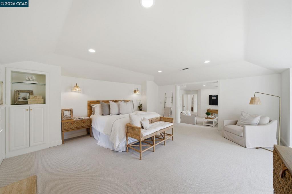 Timeless East Coast–inspired architecture meets California living at 3 Honey Hill Court. This home spans approx. 4,354 sq.ft. with 6 bedrooms and 4.5 baths. Five bedrooms are located upstairs, including a spacious primary suite with sitting room and walk-in closet, plus four additional bedrooms. An en-suite office or guest room on the main level offers ideal flexibility for working from home, hosting guests, or extended family. Formal living and dining rooms offer elevated entertaining spaces, while the updated kitchen that opens to the family room is a perfect setting for everyday living. Throughout the home custom millwork, wainscoting, coffered ceilings and designer-inspired finishes add warmth, character and timeless style. French doors open to both front and back yards, creating seamless indoor-outdoor flow for entertaining, outdoor play, and enjoying views of the Orinda hills. The backyard is anchored by a gorgeous stone wood-burning fireplace, perfect for cozy evenings and gatherings. A sport court next to the garage provides a play space for all ages. Ideally located minutes to Highway 24, BART, Orinda Country Club, and Sleepy Hollow School, this special property offers a rare blend of timeless architecture, thoughtful updates and an exceptional Orinda location.