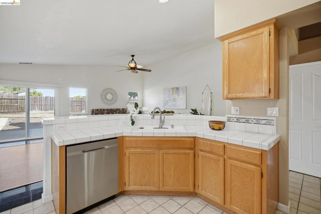 Tucked at the end of a quiet court with extra parking and room for guests, this spacious Antioch home blends comfort, style, and everyday convenience in one beautiful setting. Offering 3 bedrooms + an office, 2 bathrooms, and 2,041 sq ft, the home features a well-maintained landscaped front yard with lush greenery and an oversized 3-car garage. Inside, stylish tile and hardwood flooring flow throughout the home, while large windows fill the space with natural light. The inviting family room with fireplace creates a warm gathering space, and the beautifully designed kitchen features stainless steel appliances, a breakfast bar, and a layout ideal for hosting and entertaining. The primary bedroom offers direct access to the backyard and includes a walk-in closet and a primary bathroom with dual sinks and elegant gold accents. Additional highlights include hallway storage cabinets, well-appointed bathrooms with gold finishes, and a truly move-in ready feel. Step outside to a large, low-maintenance backyard with side yards and endless possibilities to design the outdoor space you’ve always wanted. Located just 3 minutes from Kaiser Hospital and close to schools, parks, trails, a golf course, shopping, and dining, this home combines peaceful court living with exceptional convenience.