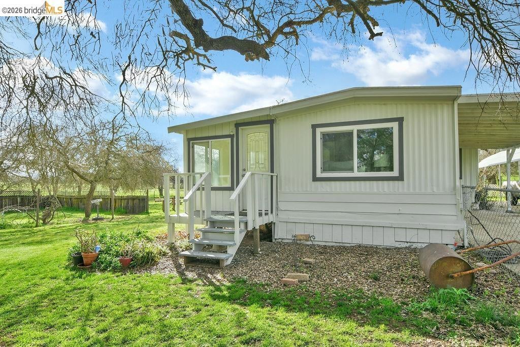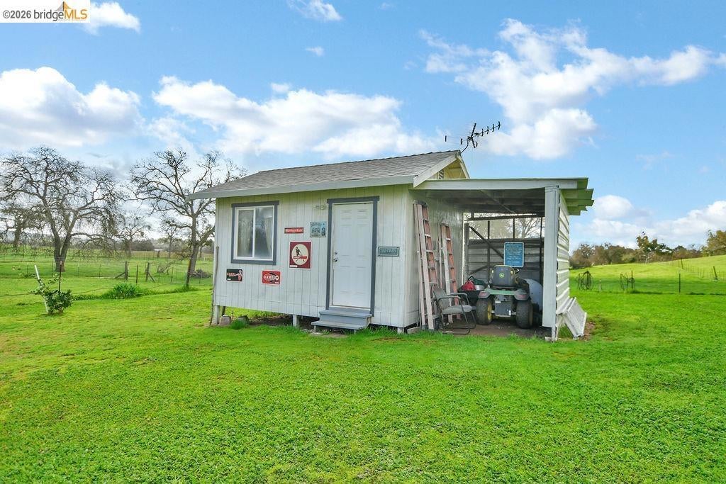 Enjoy private country living on approximately 5 usable acres in Valley Springs! This 3-bedroom, 1.5-bath home offers 1,040 sq ft of comfortable living with room to grow, relax, and explore. The property features a seasonal stream, adding natural beauty and a peaceful setting. Just minutes from Lake Camanche, you’ll have easy access to boating, fishing, camping, and year-round outdoor recreation. A detached bonus structure provides flexible space for a home office, studio, or creative retreat, while multiple outbuildings and workshop areas offer room for storage, projects, or equipment. An RV hookup adds convenience for guests or travel. With owned solar, well, septic, and an owned propane tank, this property offers efficiency and independence. Whether you're dreaming of a mini ranch, homestead, or simply more space to enjoy, this property delivers.