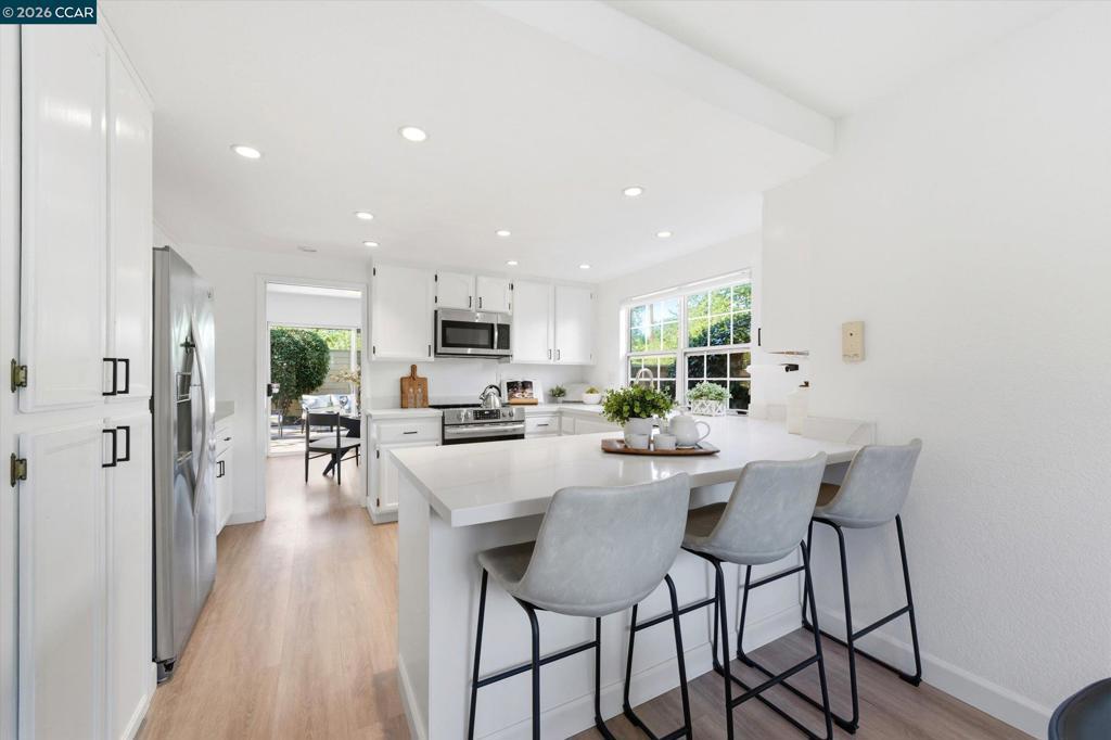 Welcome to the highly desirable Village community, ideally located within close proximity to the freeway, John Muir hospital, shopping, and scenic biking and hiking trails and heather farms. This beautifully updated home offers soaring ceilings, abundant natural light, and a thoughtfully designed open layout perfect for both everyday living and effortless entertaining. Featuring 3 spacious bedrooms and 3 bathrooms. The home showcases beautiful finishes throughout, including upgraded flooring, a modernized kitchen with quartz countertops, stainless steel appliances and refreshed cabinetry. The inviting living and dining areas flow seamlessly, enhanced by vaulted ceilings and large windows that create a bright and airy atmosphere. Step outside to the private yard great for entertaining. 2 car attached garage, ample storage. access to community amenities such as pool and tennis courts. A rare opportunity to own a well cared for home in one of Walnut Creek's sought after communities. open house Sat 4/11 & Sun 4/12 1pm to 4pm.