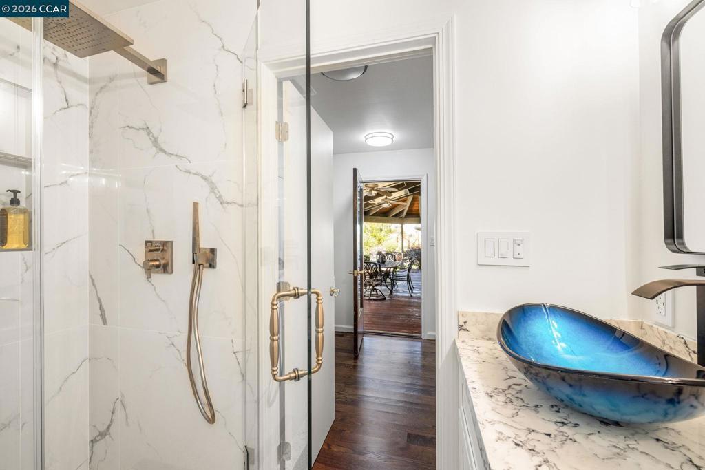 One of the original Blackhawk estates w/$1 million in updates & features. A sparkling single-level gem near the private East Bay Country Club’s main gate & steps from Lakeside Clubhouse & golf course. 4000+/-SF on .4-acre corner lot. 5 bds. 4 bths. Soaring ceilings. Fresh int/ext paint. Walnut stained oak hardwd flrs. Solar panels. New roof. Double iron/glass frt dr. Elegant foyer. Step down to formal living rm w/gas frpl, stone surround. Adjacent formal dining rm w/garden views. All new chef’s kitchen. Granite counters/bksplsh. Soft-close cabinetry. Bosch dual ovens, dual dishwashers, Smart electric cooktop, refrigerator. Island/bkfst bar. Casual dining w/French dr to pvt terrace. Large fam rm w/frpl. 3 sets of French drs open to bkyd deck, patios, pool, spa, gardens. Large bonus rm ideal for game/media rm w/bkyd access. Primary suite has vaulted ceiling, sitting rm, bkyd access. En suite w/dual-sink vanity, dual walk-in closets, step down shwr w/dual shwrhds. Add’l bdrm suite. 3-car garage, overhead storage. Laundry rm w/new w/d, sink, cabinets, granite counter. Whole house fan. Dual HVAC (1 new). New fencing/gates. Near Blackhawk amenities. Tennis/pickleball cts, fitness ctr, 2 golf courses, sprts complex. Close to shopping, dining, downtown, freeways, top-rated SRVUSD schls.