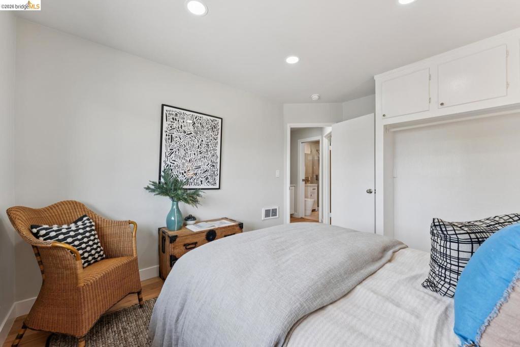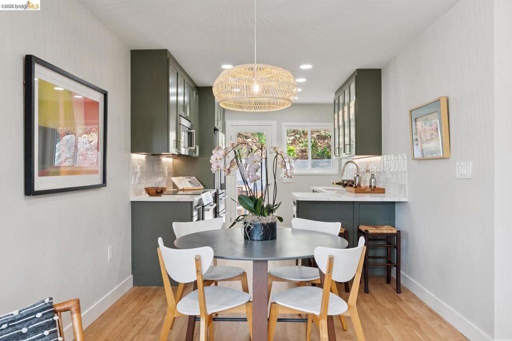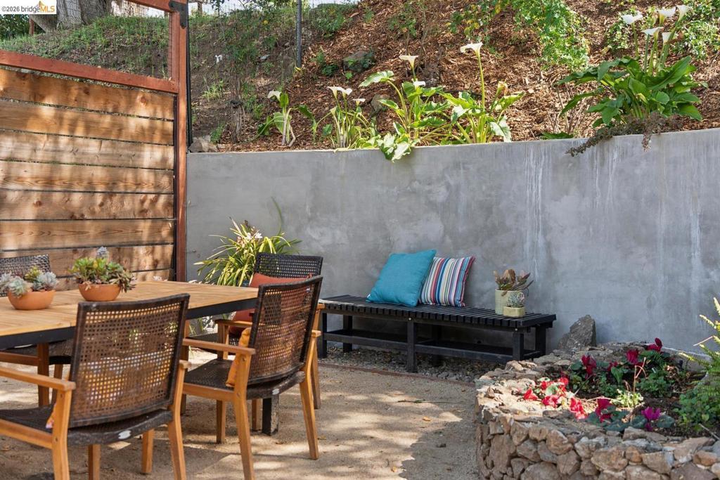 Updated all-electric midcentury bungalow in cul-de-sac with views of Wildcat Canyon. Turn-key gem, thoughtfully renovated with clean modern open design - lives much larger than its footprint - no wasted space. Views through glass door draws you to a patio designed for entertaining, & hidden gardener's dream side yard sink/potting area. Stacked indigenous rock & recycled concrete terraces, retaining walls, rustic staircase & large boulders evoke the feeling you're part of a woodland environ where nothing goes to waste. Chef's kitchen with custom maple cabinets, smart Bosch appliances - dishwasher, induction cooktop range, convection oven, warming drawer, and a combo second oven/microwave, FisherPaykel French door refrigerator, accessorized deep stainless sink, wine frig, under-cabinet lighting, on-demand hot water, breakfast bar, sleek quartz countertops, & hand-made designer backsplash tile complete the kitchen. Spa-inspired bath renovations include custom stone floor, large format tile walls & chair-height toilet. Beyond the cosmetic, you'll find an extensive new drainage, new/updated electrical, plumbing, windows, roof, driveway & patios front and back. $0 pest, sewer compliant, no trans tax or shut off. Transbay bus & BART make SF commuting a breeze & only about 20 mins to Cal