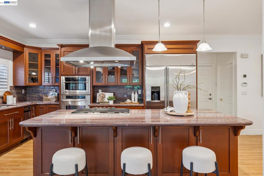 Exceptional custom home in highly desirable San Ramon, located within the award-winning San Ramon Valley School District and walking distance to all three schools. Originally built in 1976, this property was completely rebuilt in 2007 on a new foundation to meet modern building standards. Situated on a premium corner lot with no neighbors on three sides, this home offers added privacy and abundant natural light. Spacious and functional floor plan includes a bedroom with a full bath on the main level, ideal for guests or multigenerational living. All bedrooms feature walk-in closets. Home offers 5 full bathrooms and 1 half bath, including multiple jetted tubs. The gourmet kitchen features a seamless single-slab granite countertop, a butler’s pantry with a sink, and dual refrigerator drawers. The upstairs den includes a convenient kitchenette with a sink and space for a mini refrigerator. Additional features include whole-house internet wiring with a centralized control panel, built-in concealed speakers in the family room and upstairs den (7.1 surround sound), a central vacuum system, dual-zone HVAC, and an entry chandelier with a motorized lowering system for easy maintenance. The garage includes custom wall-to-wall cabinetry for ample storage.