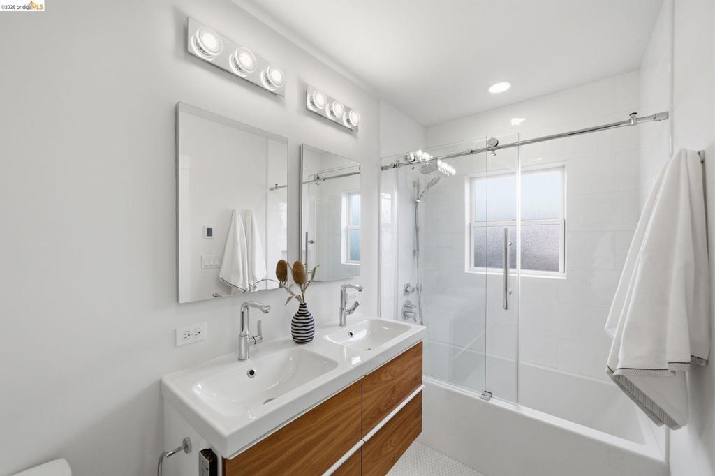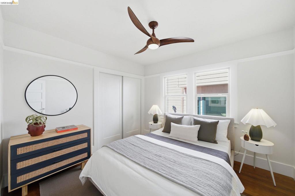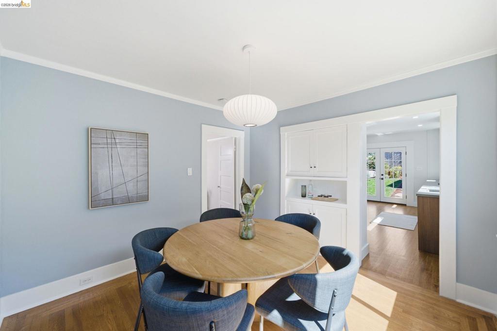 Turnkey 1922 Craftsman bungalow in sought-after Thousand Oaks, move-in ready from top to bottom. Fresh interior and exterior paint, a fully remodeled modern kitchen with French doors opening to level-in access, hardwood floors throughout, dual-pane windows, and a Fireclay Tile fireplace anchor the original space. A 2018 bedroom and bathroom addition brought the home to 2 bed / 2 bath, complete with Hansgrohe fixtures, radiant heated bathroom floors, Toto toilets and washlet, an on-demand water heater, solar, and Miele washer and dryer. New Lennox HVAC (2021). Seismic retrofit, copper piping, and sewer lateral all completed in 2012. Finished bonus room off the garage, ideal as a home gym, office, or guest room. Long 3-car driveway. 3,500 sf lot with back yard. Close to Thousand Oaks Elementary and Solano Ave shops and dining. Home Energy Score of 10!