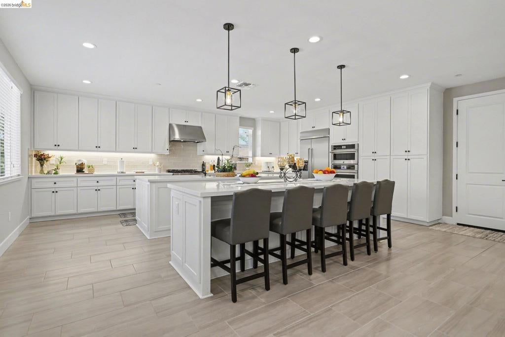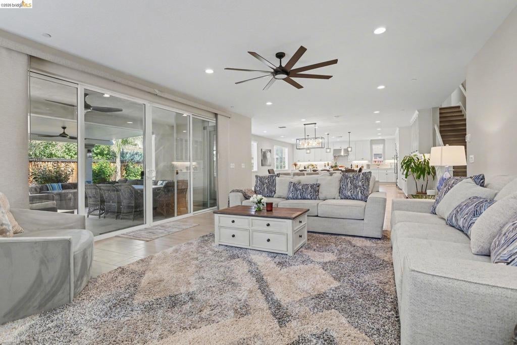 Welcome to executive-style living at its finest in the highly desirable Orchard Trails neighborhood. This stunning residence showcases over $300,000 in upgrades, offering the perfect blend of luxury, technology, & comfort. Thoughtfully designed, the home features a bedroom & ensuite downstairs, dedicated study, & a spacious upstairs flex/bonus room ideal for a media room, or additional living space. This fully integrated smart home connects your devices through WiFi, including Ring security, smart sprinklers, camera-equipped garage doors, & smart thermostats. The dream kitchen features high-end appliances, extended designer cabinetry, & dual kitchen islands, creating the perfect space for cooking, gathering, & entertaining. Step outside into your resort-style backyard retreat, complete with a saltwater PebbleTec pool & spa, sheer-descent water features, and multi-colored LED lighting. The beautifully landscaped premium lot includes a covered California Room with fireplace, mounted TV, built-in BBQ island, heirloom roses, garden, & elegant pillar-mounted walkway lighting at the home entrance. Additional highlights include a 3-car garage, side/RV access, owned solar system, Conveniently located near the vibrant downtown Brentwood, freeway access, & top-rated Brentwood schools.