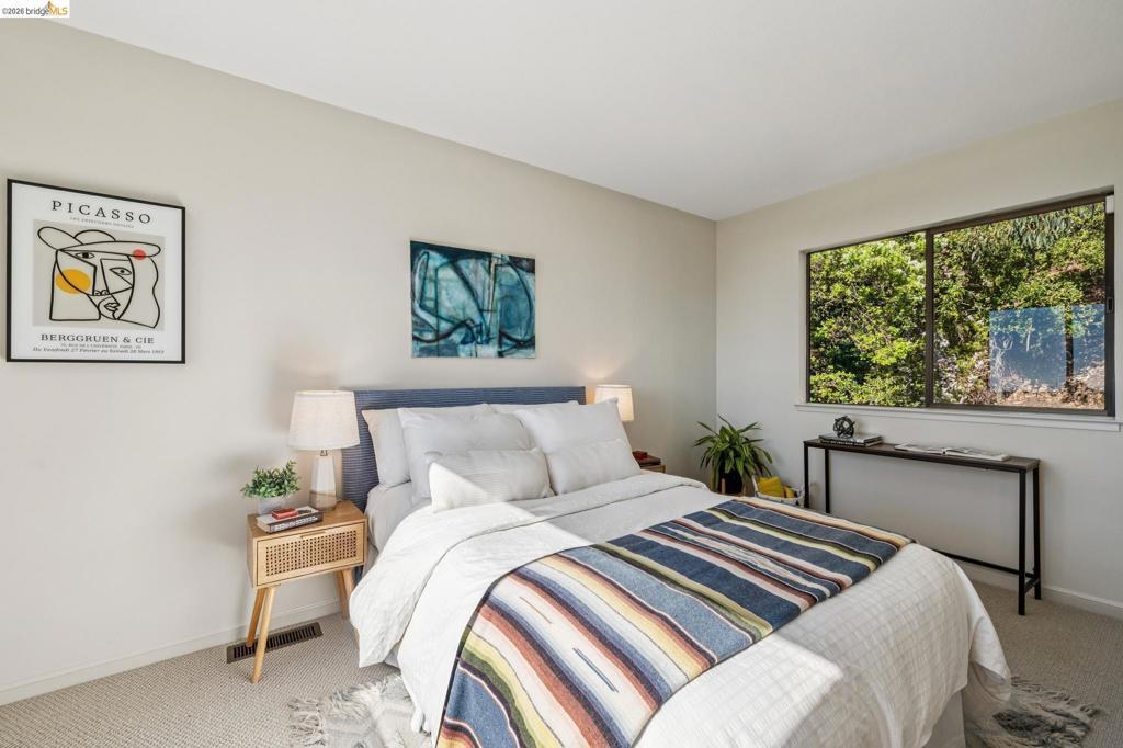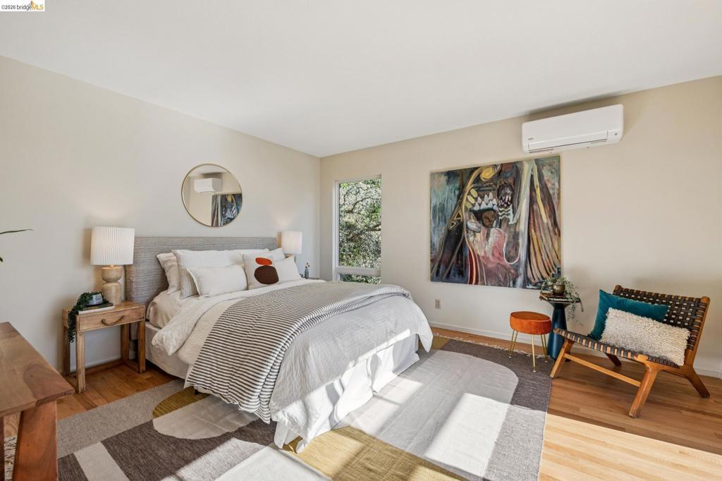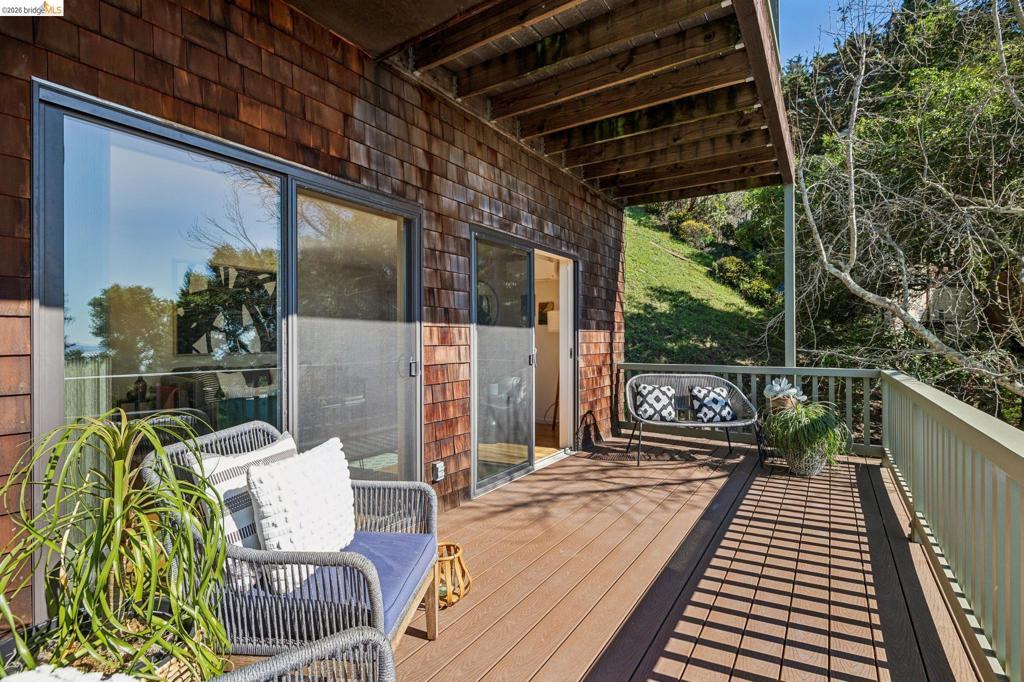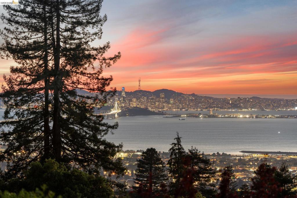 This Berkeley Hills gem on iconic Grizzly Peak Boulevard, offering sweeping, unobstructed views of the San Francisco skyline, Golden Gate and Bay Bridges, and Bay, from nearly every room, is as smart as it is beautiful. A modern, classic brown shingle exterior blends timeless character with thoughtful upgrades and a strong connection to the surrounding landscape. The light-filled interior features hardwood floors, expansive windows, and a striking wooden staircase topped by a lantern skylight. The primary suite includes a private view balcony, while the bedroom-level laundry adds modern ease. Multiple outdoor spaces including Trex decking, a kitchen-side patio, and a private side yard from a second ensuite bedroom create easy indoor outdoor living. Extensively improved for resilience and efficiency, the home includes significant seismic upgrades with a moment frame, 27 solar panels, Tesla Powerwall, mini-split heat pumps, EV charger, and Zone Zero compliance. With a Home Energy Score of 10, this is a rare blend of Berkeley charm and high-tech peace of mind. A two car attached garage plus off street parking for two adds rare convenience. Ideally located near Tilden Park, the UC Botanical Garden, and just minutes to UC Berkeley and North Berkeley amenities. Open Sat/Sun 2PM - 4PM
