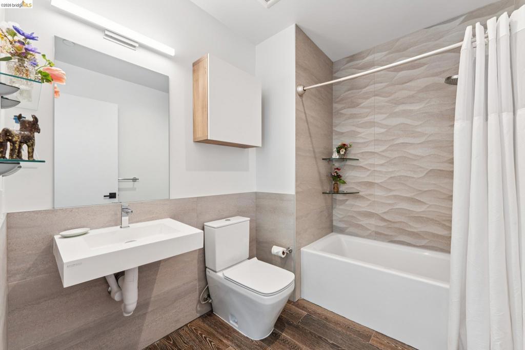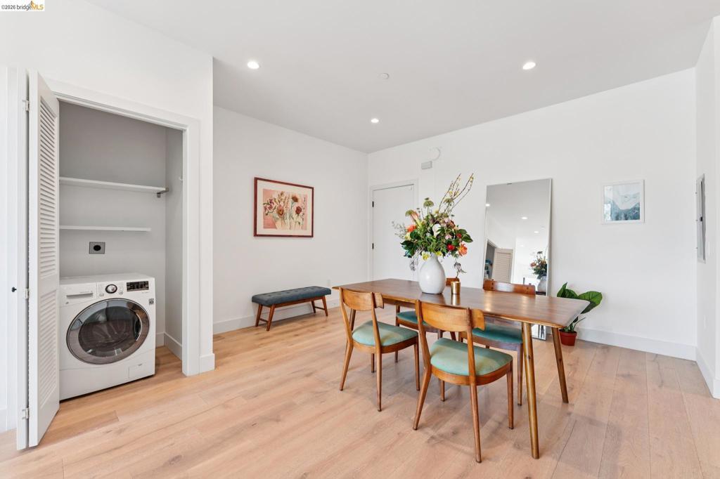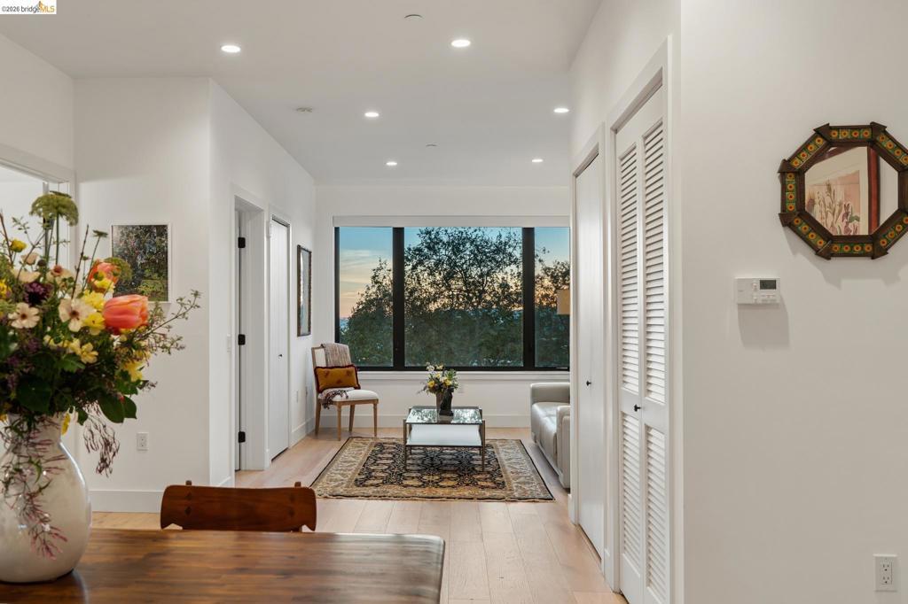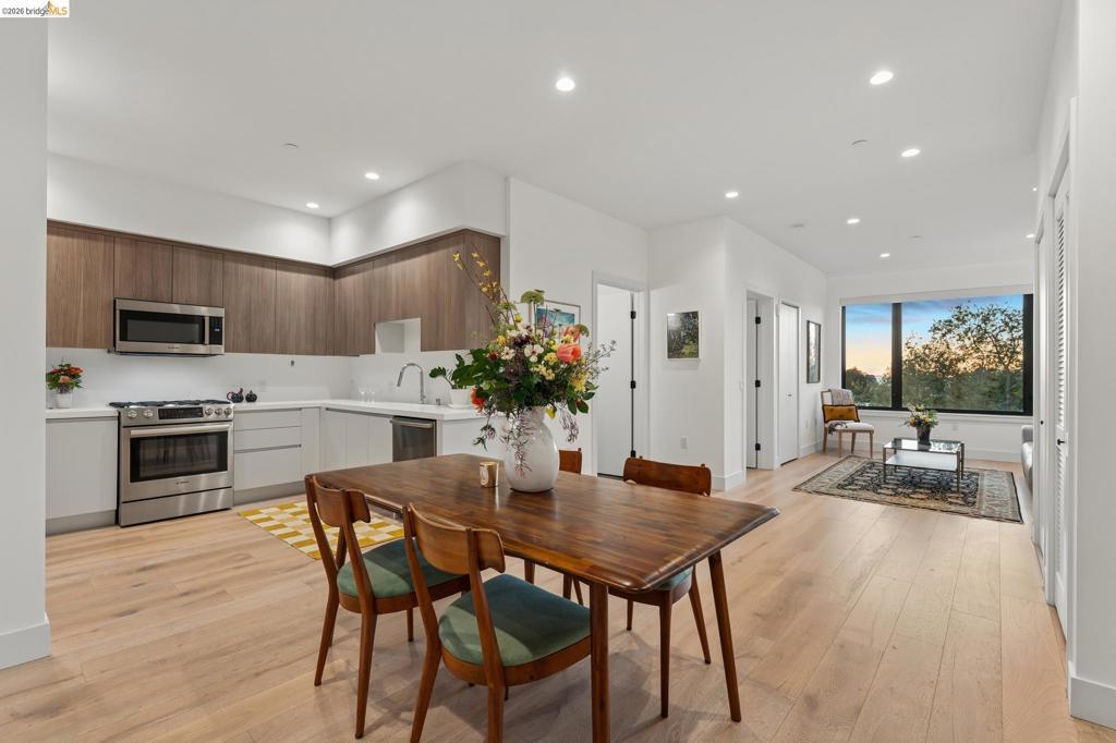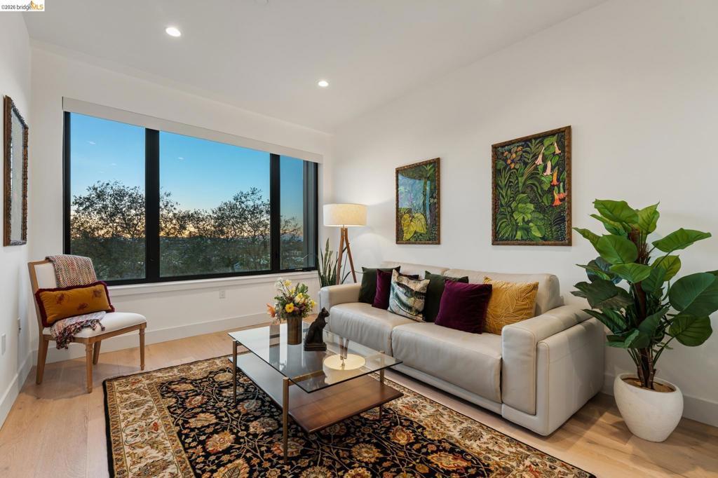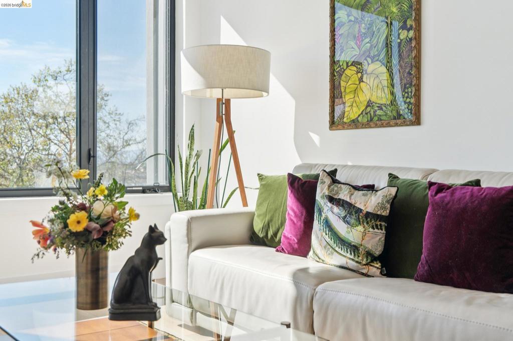 Contemporary, light-filled top-floor condominium built in 2020, featuring filtered bay views from multiple rooms. This 1 bed, 1 bath residence offers a thoughtfully designed open floor plan with expansive windows that flood the space with natural light, creating a bright and airy living environment. The modern layout is ideal for everyday living and entertaining. Radiant heat throughout. Dedicated parking adds everyday convenience. Residents enjoy access to a shared rooftop garden with sweeping views of the bay, 2 bridges, surrounding hills, and The Campanile—a perfect setting for relaxing, gathering with friends, or taking in the sunset. Located in vibrant Southwest Berkeley, 2747 San Pablo Ave places you in the heart of a dynamic neighborhood. Just moments away, Berkeley Bowl West is a local favorite. The surrounding San Pablo Avenue corridor is lined with cafes, restaurants, and everyday conveniences, reflecting the area’s diverse and creative spirit. With easy access to I-80/580, nearby transit options, and proximity to West Berkeley’s thriving arts and maker scene, this location offers a rare blend of connectivity, culture, and comfort—making it an ideal place to call home. Views: Downtown