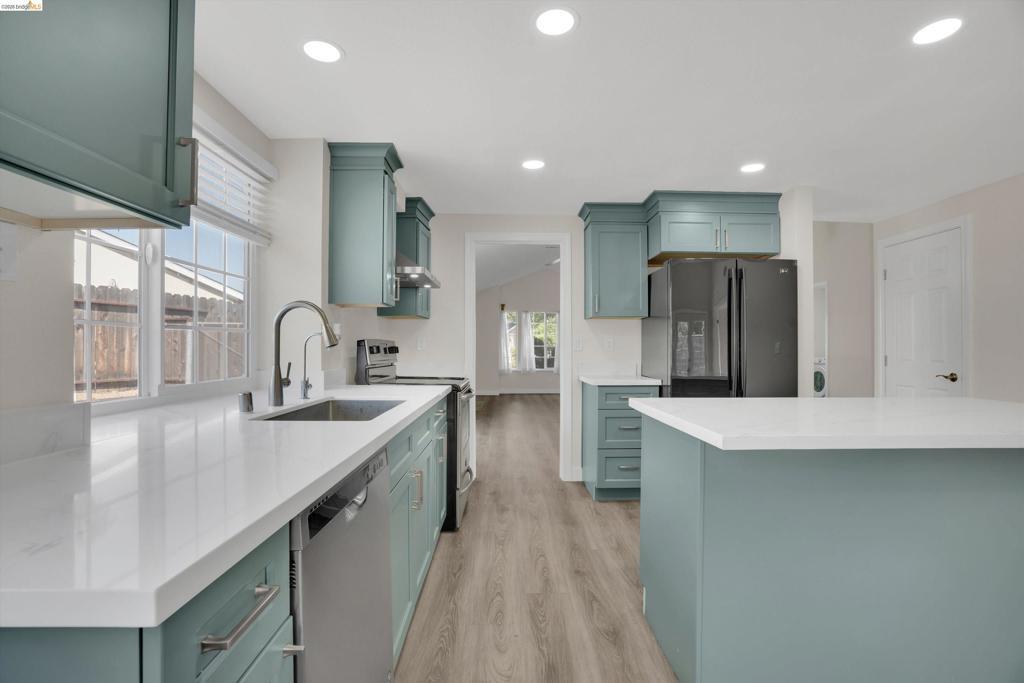 Welcome to your private oasis in the heart of Antioch! Tucked away on a quiet street with no rear neighbors, this beautifully updated single-level home offers privacy, comfort, and modern style. Featuring 4 bedrooms and 2 full bathrooms, including a private en-suite, the layout is perfect for both everyday living and entertaining. The homeowner has invested over $70,000 in recent renovations, including a remodeled kitchen, beautifully updated bathrooms, new luxury vinyl plank flooring throughout, recessed lighting, and new washer and dryer. Fresh interior paint and abundant natural light enhance the home’s bright and inviting feel. The open-concept kitchen features quartz countertops, a new range hood, and a cozy eat-in area that flows seamlessly into the family and living rooms—ideal for gathering with family and friends. Step outside to your peaceful backyard retreat featuring a hot tub, tranquil pond, and plenty of space to garden, entertain, or simply relax. With no rear neighbors, it offers exceptional privacy. Located just a short walk to Hillcrest Park and minutes from Antioch BART, freeway access, shopping, dining, and schools, this move-in ready home offers the perfect balance of convenience and tranquility. [PHOTOS ARE VIRTUALLY STAGED]
