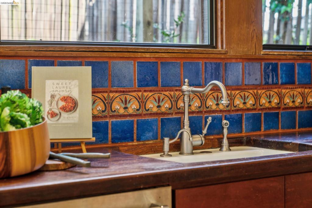 Beautiful Berkeley Craftsman with Bay & Bridge Views! Come enjoy this classic Berkeley Craftsman in the Berkeley Hills offering picturesque views and a gorgeous landscaped yard. The flexible layout includes 1 bedroom, office, and full bath on the main level, plus 4 additional bedrooms upstairs. A lower-level studio with separate entrance, kitchen, and bath provides extra space for guests, extended family, or potential rental income. Classic architectural details shine in the light-filled living and dining rooms with preserved woodwork, box beam ceilings, and gleaming Madrone floors. Built-ins, custom shelving, and a vintage phone nook paired with abundant natural light, create a warm and inviting atmosphere. Extensive windows frame the picturesque view perfectly. The spacious custom designed kitchen with stunning Julia Morgan inspired tile is the heart of the home, flowing seamlessly into the main living areas and office. Upstairs, 4 spacious rooms offer flexibility and comfort. Relax outdoors on the private deck, enjoy the peaceful landscaped garden, or unwind in the cedar hot tub under the stars. Home energy score 1. Conveniently located near Solano Ave, Indian Rock Park, and Kennsington with easy access to shops, dining, and scenic Berkeley Hills trails. Views: Downtown