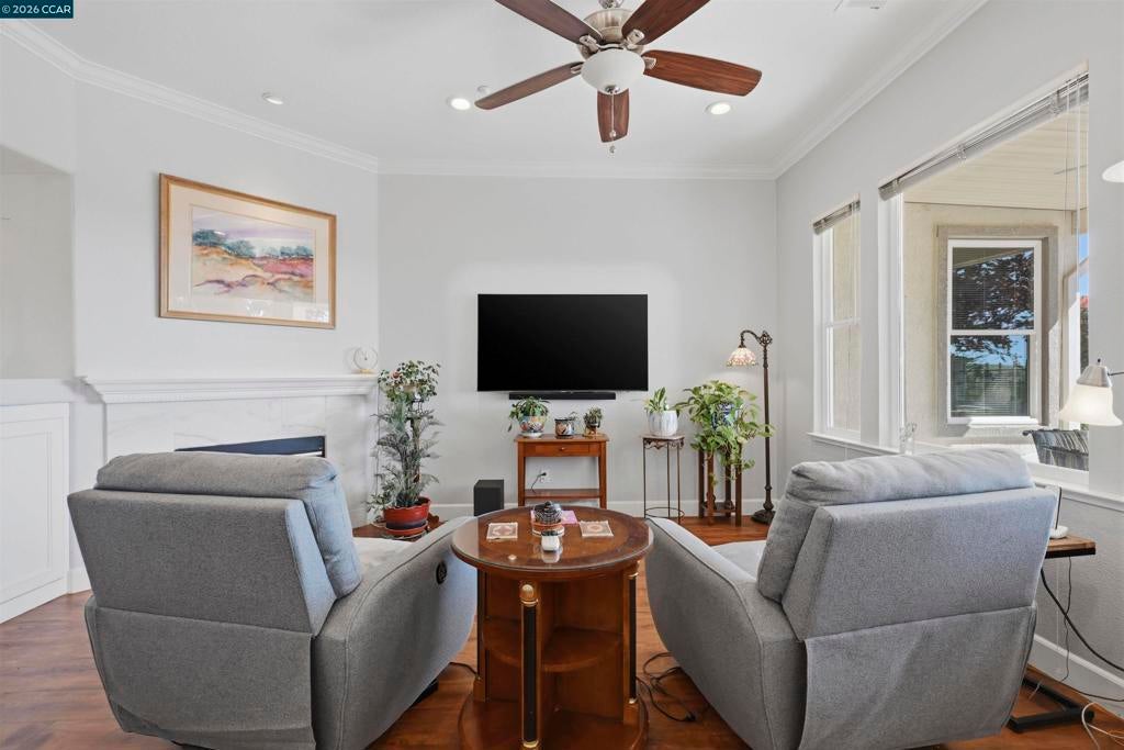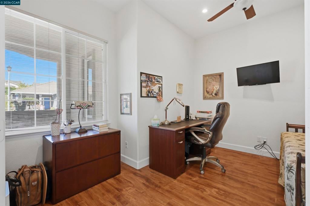 Beautifully updated single story home with stunning vineyard views and no rear neighbors. This popular model features a bright open floor plan with soaring ceilings and lots of natural light. Remodeled chef's kitchen features custom cabinets, granite slab counters, stainless steel appliances, bar seating and a cozy breakfast nook with gorgeous views. Huge primary suite features soaring ceilings and amazing vineyard views. Spa-like primary bathroom features an oversized walk-in shower, large tub, double sinks and a huge walk-in closet. Features three bedrooms: two bedrooms are suites plus a private office (3rd bedroom, just lacks a closet). Large laundry room. Newer luxury vinyl plank flooring throughout. Crown molding, custom built-ins and so much more. Peaceful, private covered patio with views galore. Oversized garage with room for storage or workshop. Summerset 3 is a gated, 55+ active adult community with tons of amenities, including pool, spa, clubhouse, gym, tennis and bocce ball. Conveniently located near shopping, restaurants, golf courses, parks, highway 4.