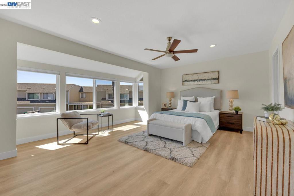Welcome to this beautifully designed 3-bedroom, 2.5-bathroom townhome with 1,618 sq ft of sophisticated living space. Every detail reflects pride of ownership, combining style, comfort, and tranquility in a prime community location. Inside, enjoy designer upgrades: new laminate flooring, updated kitchen and primary bathroom countertops, modern fixtures, fresh paint, and new closet doors. Window coverings down stairs add warmth and cohesion, creating a welcoming atmosphere. The main floor boasts a bright living room with a cozy fireplace and direct access to a wrap-around patio, ideal for relaxation. The dining room flows seamlessly into the patio, perfect for entertaining.Upstairs, the primary suite offers a modern aesthetic, new closet doors, window coverings, and an en-suite bath with a walk-in shower. Two additional bedrooms, a full bathroom, and a laundry area complete this level. Enjoy easy access to scenic paths, parks, and waterways, with shopping, dining, and amenities nearby. The detached garage and carport enhance the feel of a single-family home. Additional conveniences include a community clubhouse and pool, embracing Foster City's serene waterfront lifestyle.