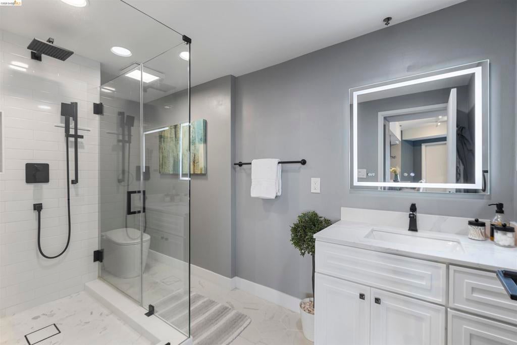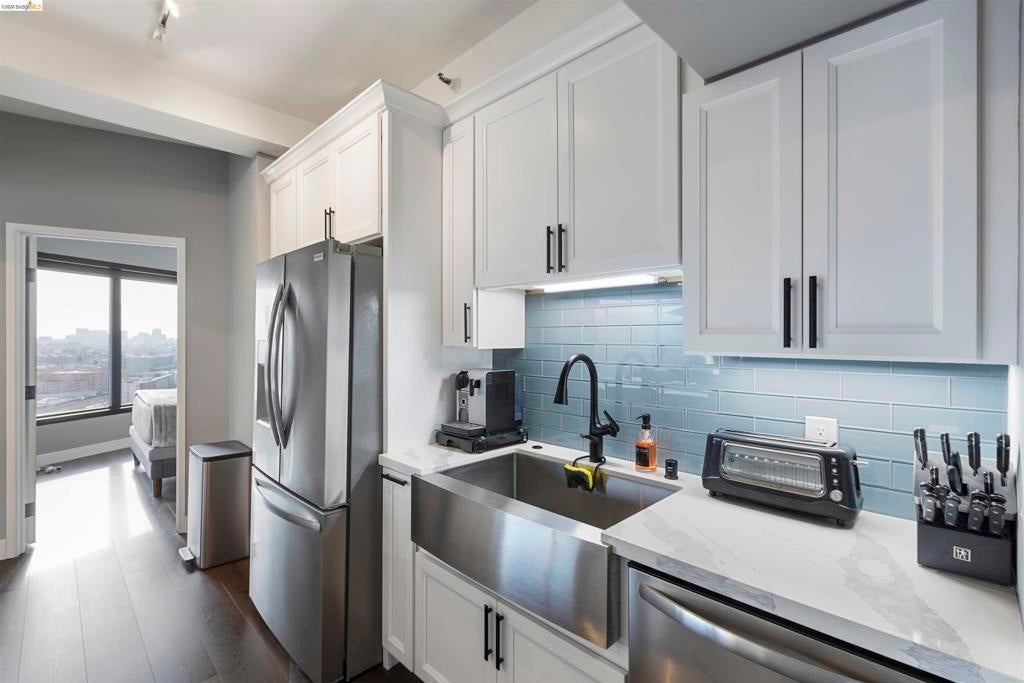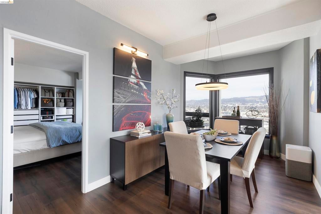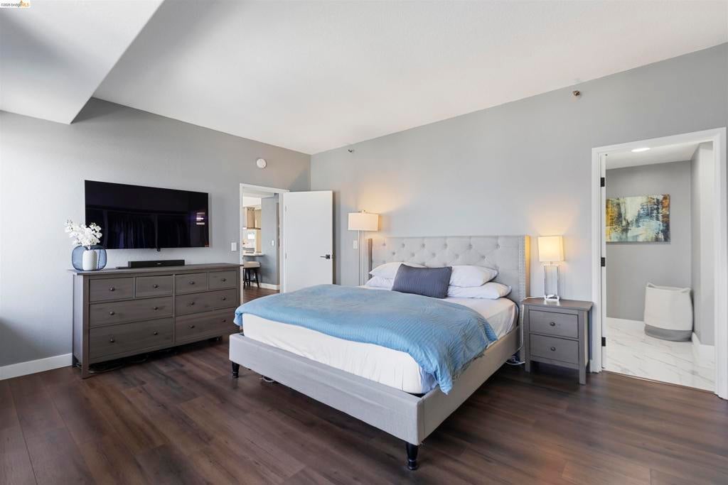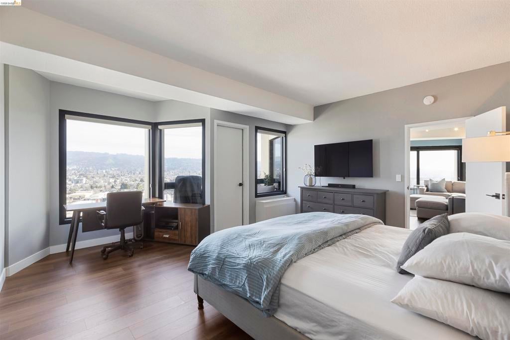 Welcome home to this one of a kind remodeled 2 bedroom unit in the exclusive Pacific Park Plaza building! This property has been meticulously remodeled from floor to ceiling with attention to detail. From the new LVP flooring throughout the home to the updated track lighting with dimmers. The kitchen boosts new white quartz countertops, white shaker cabinets, soft close drawers, glass backsplash with under lighting, and Stainless steal Frigidaire appliances. The half bathroom was updated to a full bathroom and both bathrooms have modern tile floors and walk in shower, LED mirrors, and Bidet. Both bedrooms have built in custom closets and spectacular views. The spacious open floor plan invites in natural light and the stunning views from the oversized windows and two balconies frame the hills in every room. Amenities conveniently located in the building including on site gym, tennis courts, pool/ hot tub, sauna, dedicated parking, EV car charging stations, laundry rooms on every floor and 24hr security desk. Steps to Christie park, Emeryville Public Market and Trader Joes. Plus, easy freeway access and multiple transit options including Amtrak, Emery-Go-Round Shuttle and Express Transbay bus lines right outside the front door!
