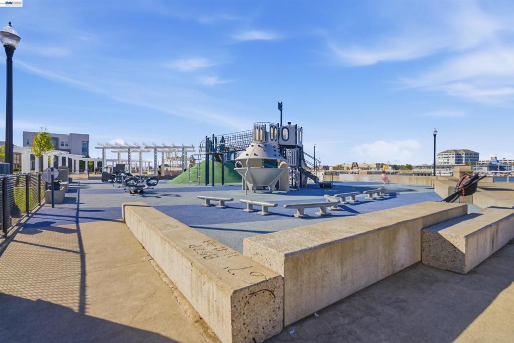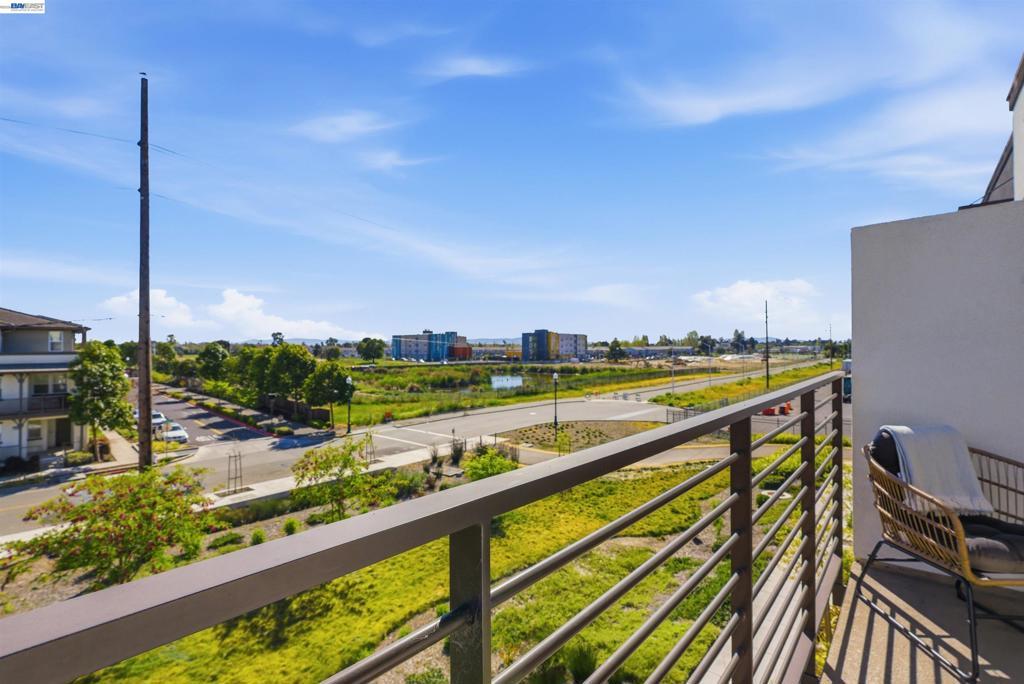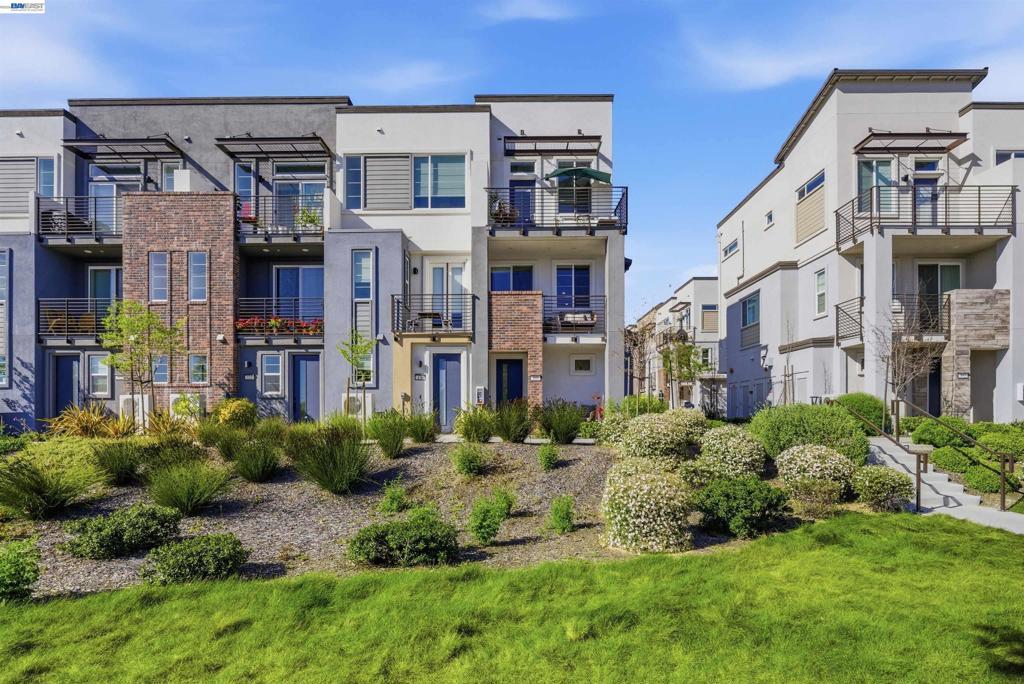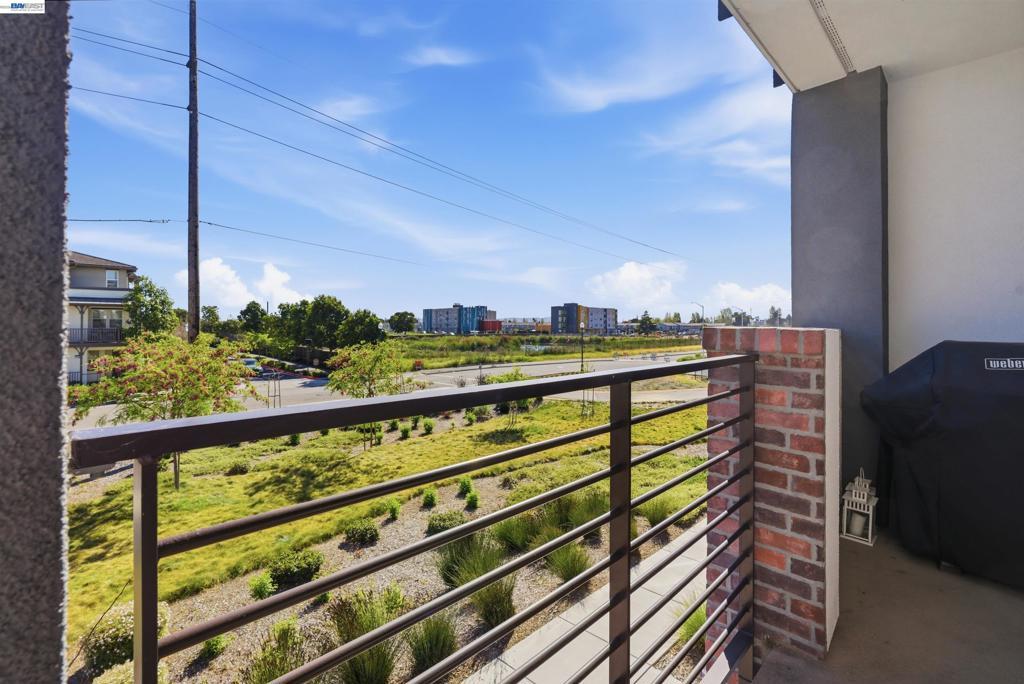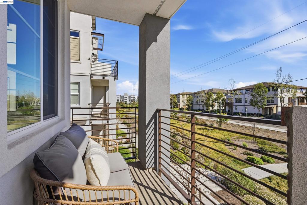 Experience the best of Alameda in this light-filled 2-bedroom, 1.5-bath townhouse-style condo in the desirable Bay37 waterfront community. Built in 2022 and beautifully maintained, this bright end unit offers windows on three sides with both sunrise and sunset exposures. The thoughtfully designed interior features a chef's kitchen with quartz countertops, a marble backsplash, an open living and dining area perfect for entertaining, and a private balcony great for unwinding with the sunset views. Upstairs, two sunlit bedrooms enjoy natural light and generous storage with custom closet systems, a spacious full bath, plus a second private balcony. Smart living is built in throughout: central A/C with three zoned digital thermostats, smart appliances, and premium window coverings. Both balconies and the front entrance open to a serene greenway, providing peaceful views and a sense of tranquility. The home is ideally located near Alameda Landing, with easy walking or biking access to retail. The location is truly exceptional—Bay37 is just steps from the Alameda waterfront with scenic walking trail, picnic areas, and a playground, with convenient access to transportation, including ferry to Jack London Square and SF. Enjoy waterfront serenity while staying connected to city life.