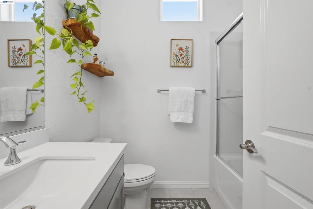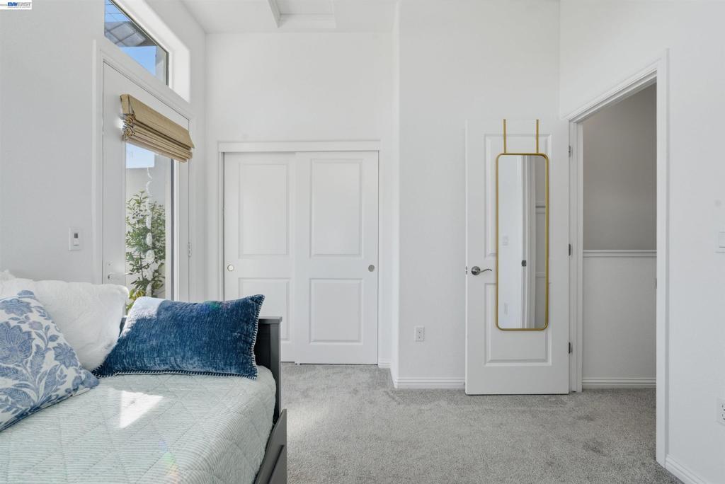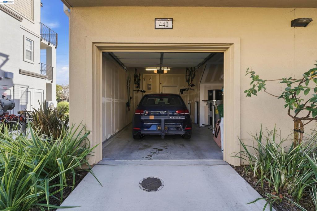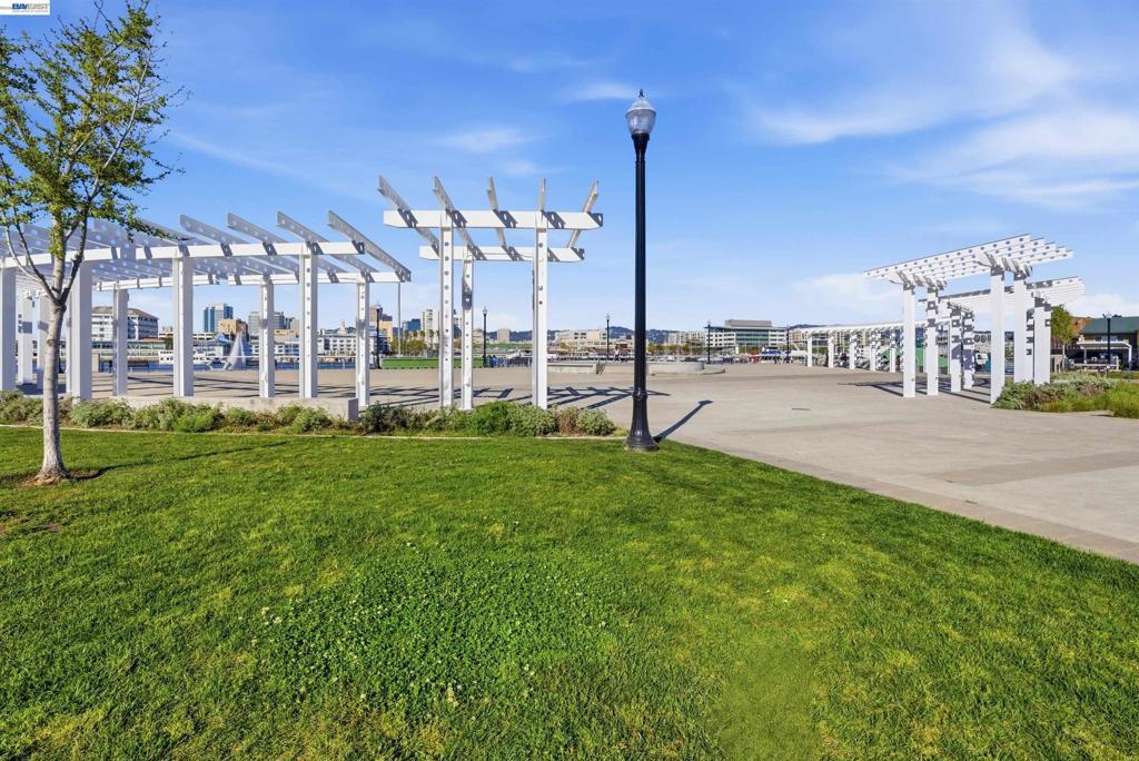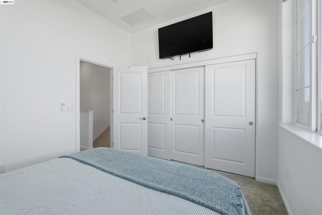Experience the best of Alameda in this light-filled 2-bedroom, 1.5-bath townhouse-style condo in the desirable Bay37 waterfront community. Built in 2022 and beautifully maintained, this bright end unit offers windows on three sides with both sunrise and sunset exposures. The thoughtfully designed interior features a chef's kitchen with quartz countertops, a marble backsplash, an open living and dining area perfect for entertaining, and a private balcony great for unwinding with the sunset views. Upstairs, two sunlit bedrooms enjoy natural light and generous storage with custom closet systems, a spacious full bath, plus a second private balcony. Smart living is built in throughout: central A/C with three zoned digital thermostats, smart appliances, and premium window coverings. Both balconies and the front entrance open to a serene greenway, providing peaceful views and a sense of tranquility. The home is ideally located near Alameda Landing, with easy walking or biking access to retail. The location is truly exceptional—Bay37 is just steps from the Alameda waterfront with scenic walking trail, picnic areas, and a playground, with convenient access to transportation, including ferry to Jack London Square and SF. Enjoy waterfront serenity while staying connected to city life.
