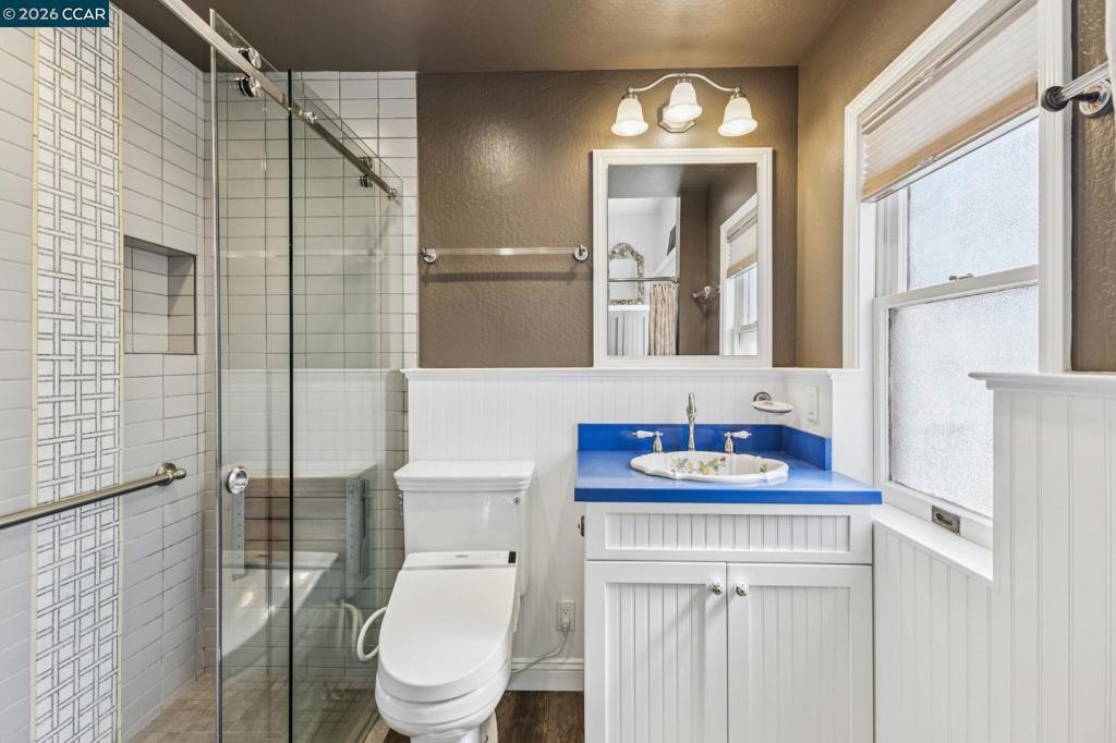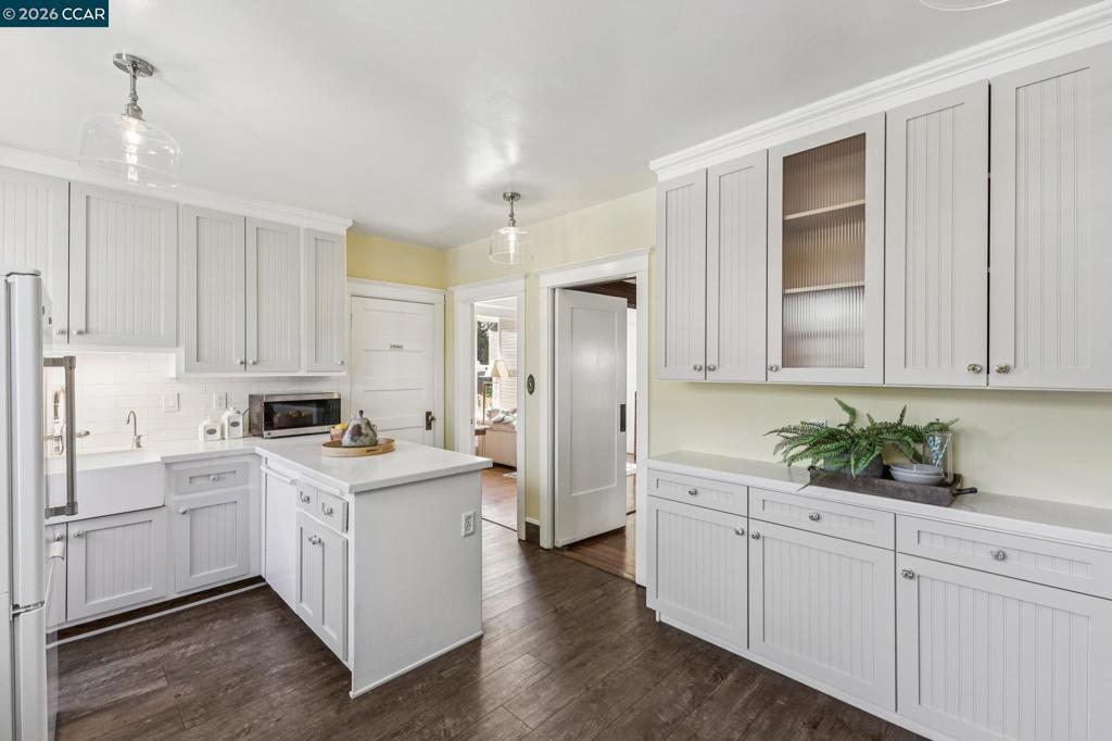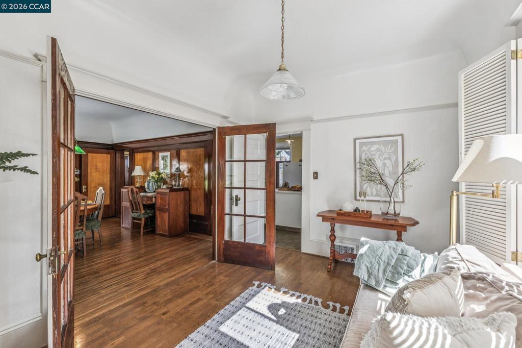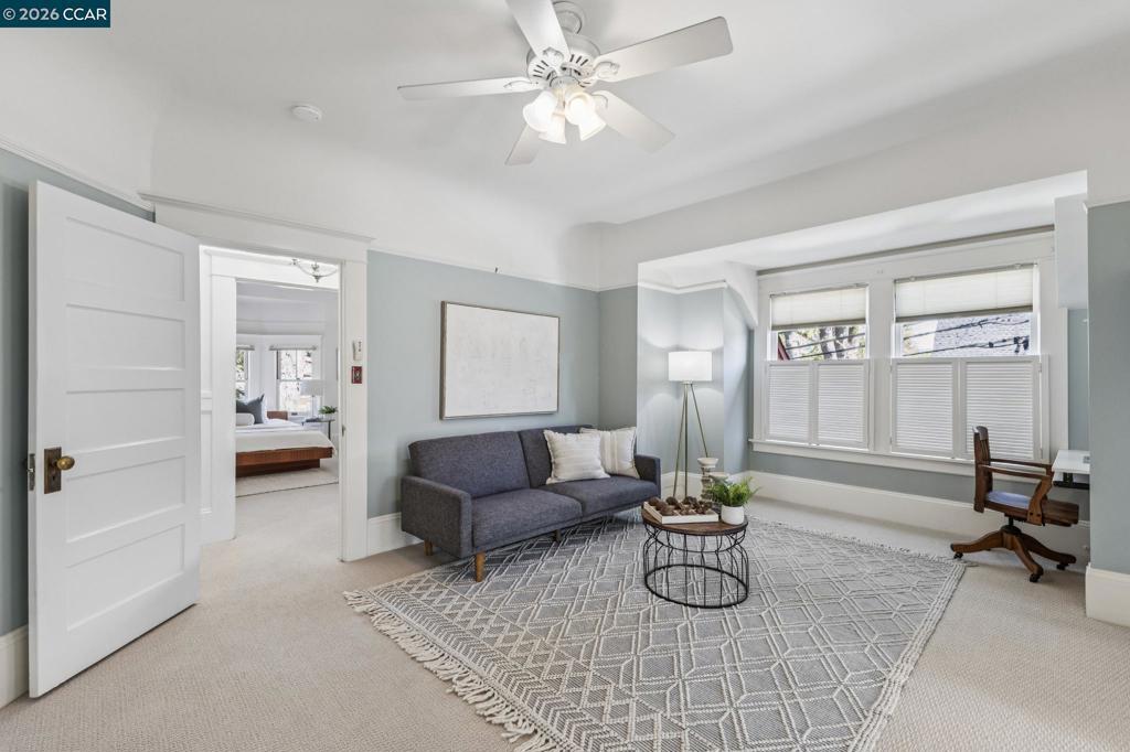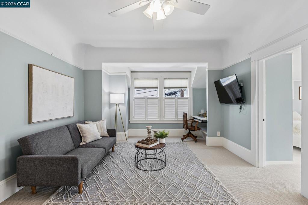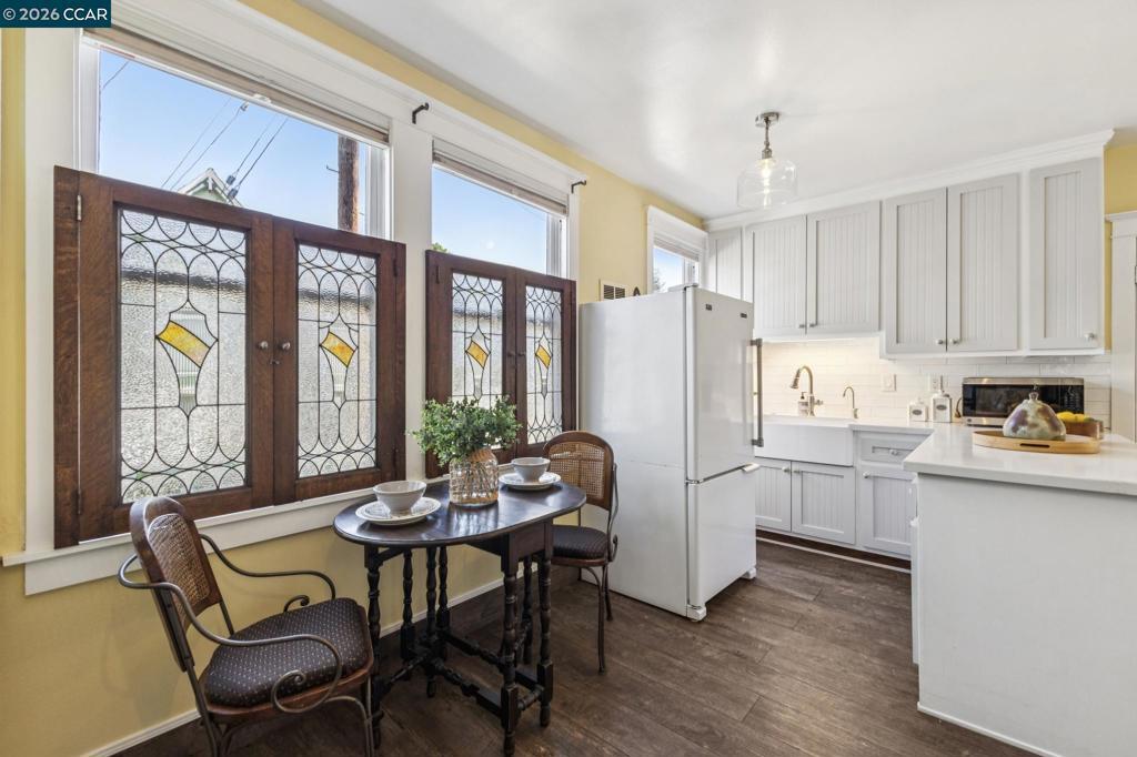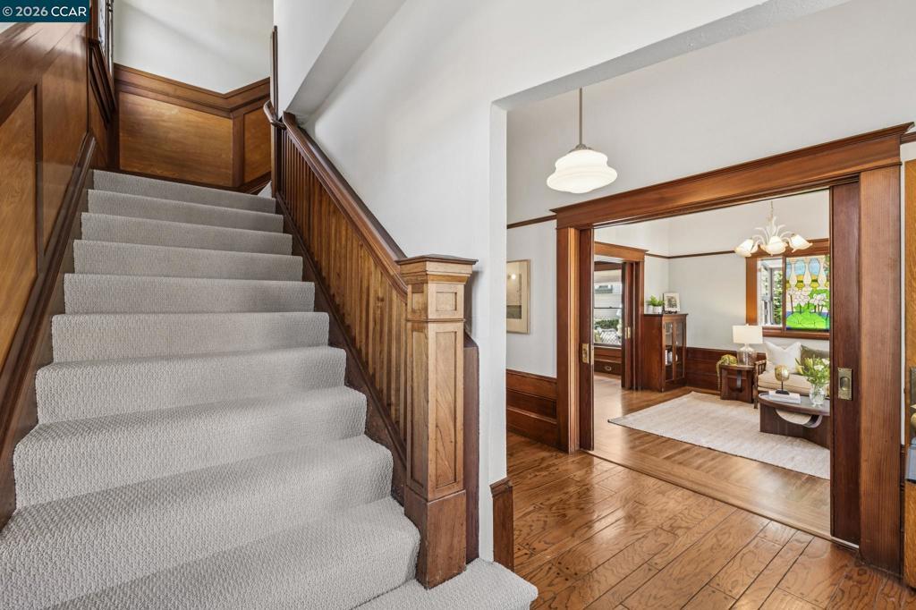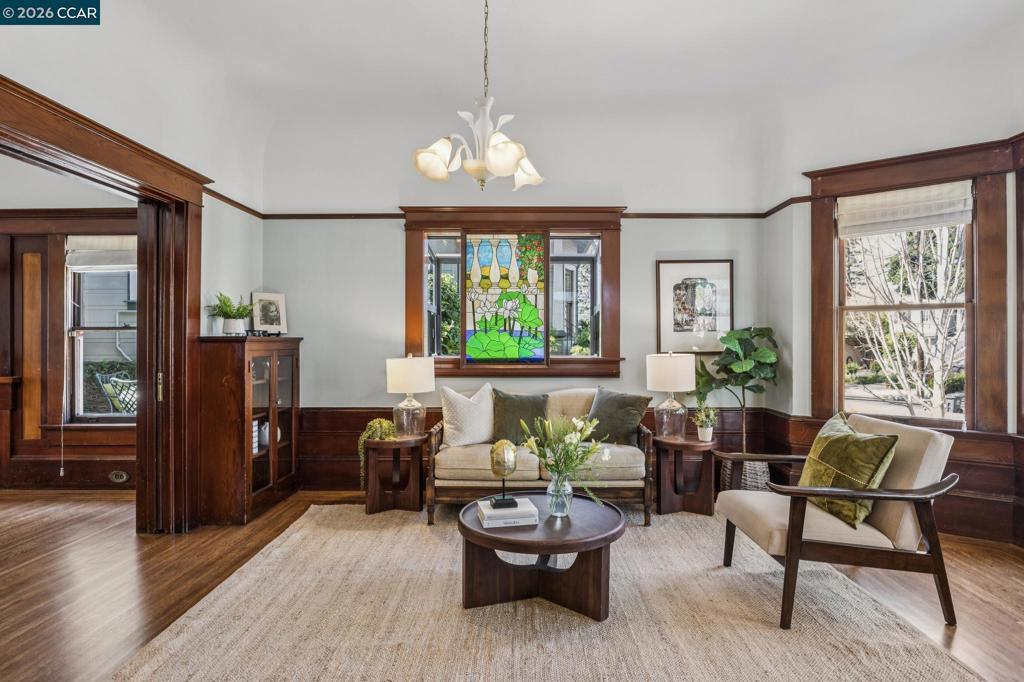 On a vibrant corner in Alameda’s sought-after East End, this romantic Victorian beautifully captures the charm of the city’s rich architectural heritage. The striking front façade showcases bold jewel tones, stained glass, intricate trim, and prominent bay windows-creating a sense of admiration and timeless curb appeal. Inside, original early-1900s millwork shines with rich wood tones and detailed craftsmanship, preserving the home’s authentic character throughout. Abundant natural light fills each room, highlighting the texture and elegance of classic Victorian design while maintaining a bright, refreshed feel. Thoughtfully updated spaces, including the kitchen and downstairs bathroom, blend modern comfort with vintage-inspired finishes for a seamless balance of old and new. Upstairs, the spacious primary suite features two walk-in closets, accompanied by two additional bedrooms and a versatile bonus room. New carpet enhances the fresh, airy atmosphere. A lush patio off the downstairs bedroom offers a peaceful retreat, while the multi-level backyard deck is perfect for entertaining, gardening, or relaxing. Additional highlights include a spacious basement with storage and workspace, a detached two-car garage, and a well-maintained yard with drip and sprinkler systems.