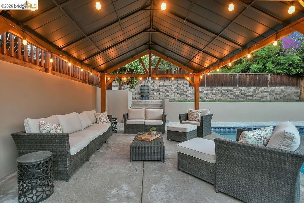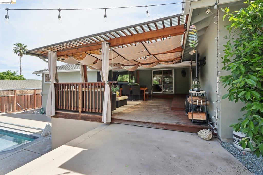 Stunning remodeled inside and out, this 4BD/3BA home in desirable St.Frances Park offers style and functionality on over a quarter of an acre lot. Features include exposed wood beam ceilings, Ceasarstone countertops, stainless steel appliances, and a kitchen with walk-in pantry. Spacious primary suite with walk-in closet. An integrated smart home system and built-in speakers throughout the home and backyard enhance everyday living and entertaining. Enjoy a private backyard oasis with pristine pool, newer cabana and pergola, garden beds, and detached office/she shed with heating an A/C. Owned solar adds energy efficiency. Ideal for indoor-outdoor living and entertaining.