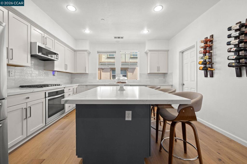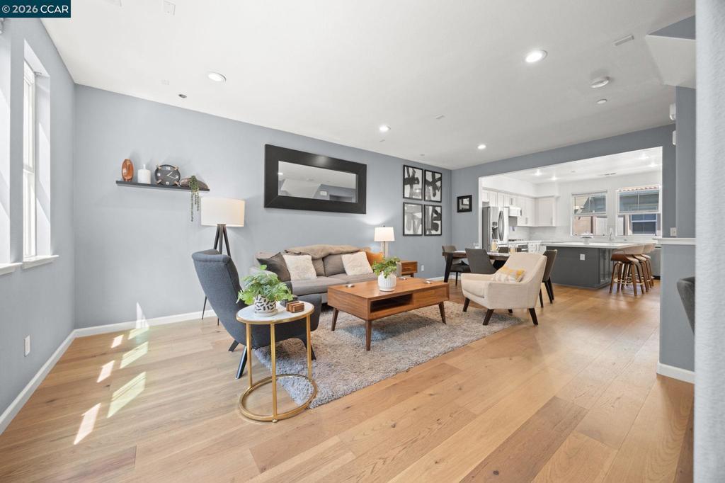 Beautifully updated townhome-style condo in Hayward's desirable Burbank neighborhood with bright open living, engineered wood flooring, a remodeled kitchen, bonus room, and attached 2-car garage. This 3-bedroom, 2.5-bath home offers 1,704 sq ft of open, functional space with high ceilings, recessed lighting, dual-pane windows, stainless steel appliances, walk-in closets, a laundry room, and a first-level bonus room ideal for a den, media room, office, or flex space. The kitchen was remodeled in 2023 with new countertops, backsplash, sink, microwave, range, and an extended island with seating, plus a walk-in pantry and generous cabinet storage. Seller updates continue with a new washing machine in 2024, new engineered wood flooring on the ground and first levels in 2025, new water heater in 2025, and new dishwasher in 2025. In 2026, the stair carpet was replaced and the baseboards and trim were repainted. Community amenities include parks, BBQ areas, playgrounds, and bocce ball courts. Convenient to Downtown Hayward, shopping, dining, the library, BART, Amtrak, and 880, 580, and 92. Low HOA of $265/month. Open House Sat 4/11 from 2-4PM