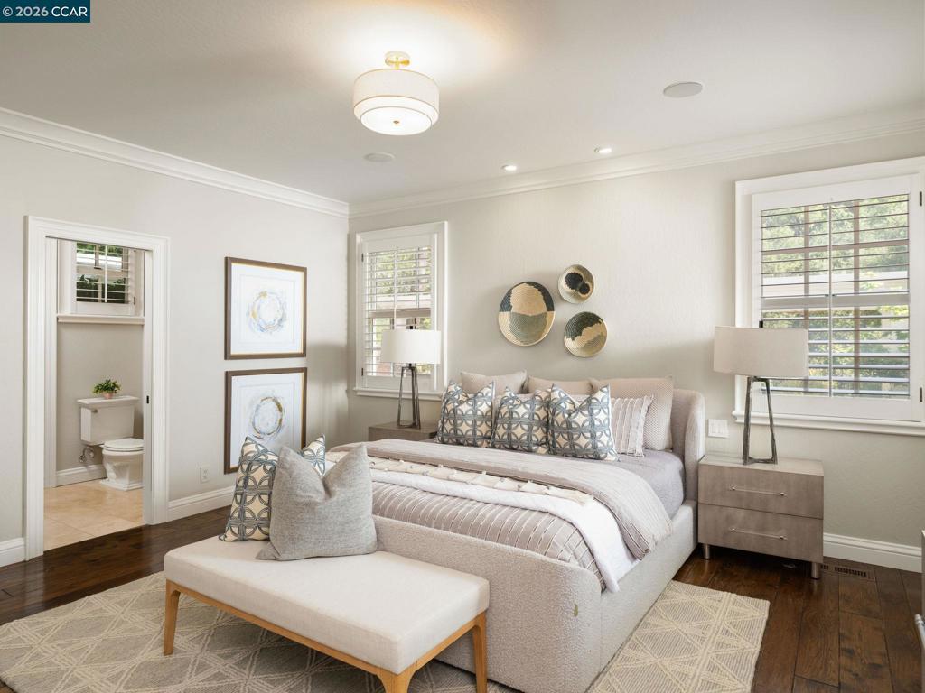 East-coast-inspired grandeur & west-coast lifestyle w/ $1.3 million +/- smart home & outdoor improvements. Acre estate on cul-de-sac in Alamo’s exclusive gated Stonegate at the foot of Mt. Diablo. Crestron app-controlled HVAC, lighting, 20+ music zones, 8 TVs. Pool w/new pebble tech finish. New roof, concrete slab, insulation. New wine cellar w/multiple wine refrigerators, frpl. Timeless architectural details. Extensive millwork. Soaring ceilings. LED recessed lighting. Hardwd flrs. Marvin sliders. Solar panels. 6399 +/-SF. 6 bds. 6 full bths, 2 half bths inclds 2 main-level suites & 2-rm exec office/6th bdrm suite. Formal living w/frpl. Formal dining rm. All new chef’s kitchen w/quartz counters, island/brkfst br, dual-toned cabinetry, Shaws farmhouse sink. SubZero frig & freezer, Wolf 6-burner cooktop, dual ovens, warming drwr. 2 Cove DWs. Brkfst rm w/frpl, coffee bar, dual frig/freezer drawers, frpl. Fam rm w/frpl, home theater, exposed beam ceiling, French drs to bkyd. Backyd sanctuary borders open sp. 3 pergolas. Outdr kitchen. Frpl. Spts ct. Towering oaks, roses, fruit trees. 3-car garage, epoxy flr, storage cabinets. Mudrm. Laundry rm w/2 sets of stacked w/d. New wtr htr. Steps from hiking trails. Near Alamo Plaza, downtown Danville, Livorna Park, top-rated SRVUSD schls.