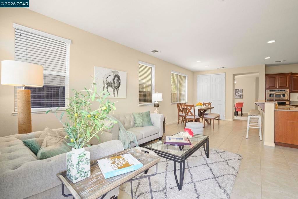This spacious 3127 sq.ft. home is located in the desirable master planned gated community of "The Lakes", truly a resort with 3 pristine lakes and fountains surrounded by walking paths, playgrounds, tennis courts, a bocci ball area, pickle ball courts, movies and even music in the park. You can also explore the waterways of the Delta, views of Mt. Diablo, nearby trails, open spaces and the great outdoors. A great open kitchen and family room concept is ideal for a fabulous flow of entertainment. In the kitchen, you will find granite countertops, stainless steel appliances, a bountiful pantry and a large island with breakfast bar and casual dining area. The separate dining area and living room beam from natural light from abundant windows and volume ceilings. The primary bedroom is huge - a sitting area or personal office area can easily be accommodated. In addition, there is a large loft upstairs for family activities. Fresh paint and carpet allows this home to be ready for immediate move in and the low maintenance landscaped back yard gives you extra time to enjoy Delta Living. This home has an oversized 3 car tandem garage which will accommodate a boat, all your toys and a long driveway to welcome friends. Move to Discovery Bay where your neighbors "live where they play".