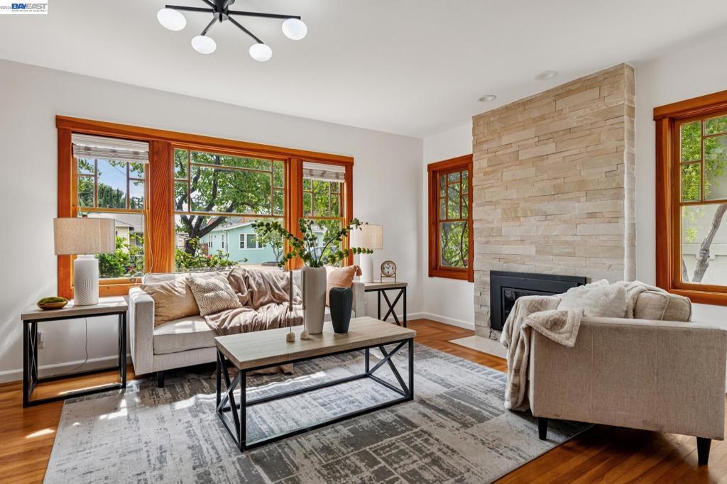 Discover the perfect blend of contemporary updates & craftsman charm in this stunning single-story home in a quiet Broadmoor neighborhood. Nestled on a tree-lined street, the main house features 2BR/1BA filled w/character & craftsmanship. The interior boasts beautiful wood beams, wood doors/trim, original hardwood floors & a fresh palette of new paint that makes the space feel bright & inviting. The light-filled living room is anchored by a feature stone wall w/a gas fireplace. At the heart of the home lies a beautiful kitchen equipped w/wood cabinets, brand-new gas stove & microwave, & stainless appliances for the home chef. The bathroom is a vintage-inspired retreat w/ a classic clawfoot tub, wainscoting & new light fixtures. Both bedrooms offer walk-in closets & a convenient laundry closet. A long driveway w/a secured gate leads to a permitted detached ADU. Featuring 1bed/1ba & cabinet w/ a mini-fridge, this versatile space is perfect for guests or home office. Step outside to a private, lushly landscaped backyard sanctuary. The outdoor space "wows" w/a tiled patio w/built-in seating, an arbor draped in fragrant jasmine & a beautiful lemon tree. A raised deck offers the perfect spot for a hammock or yoga mat. Close to BART, downtown, dining, shops, groceries, school & freeway.
