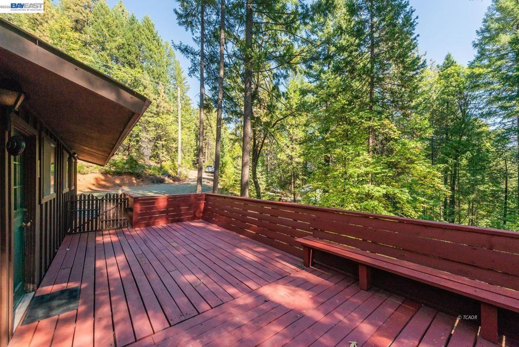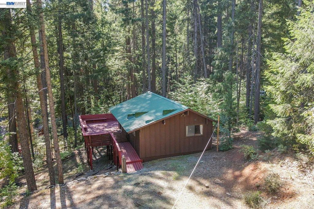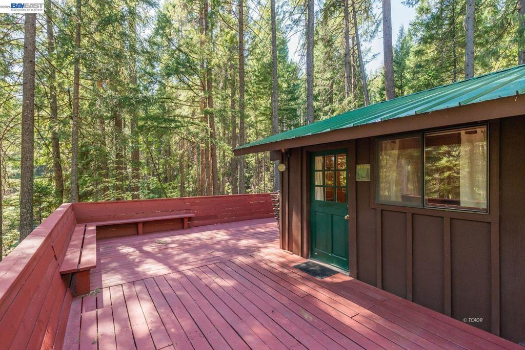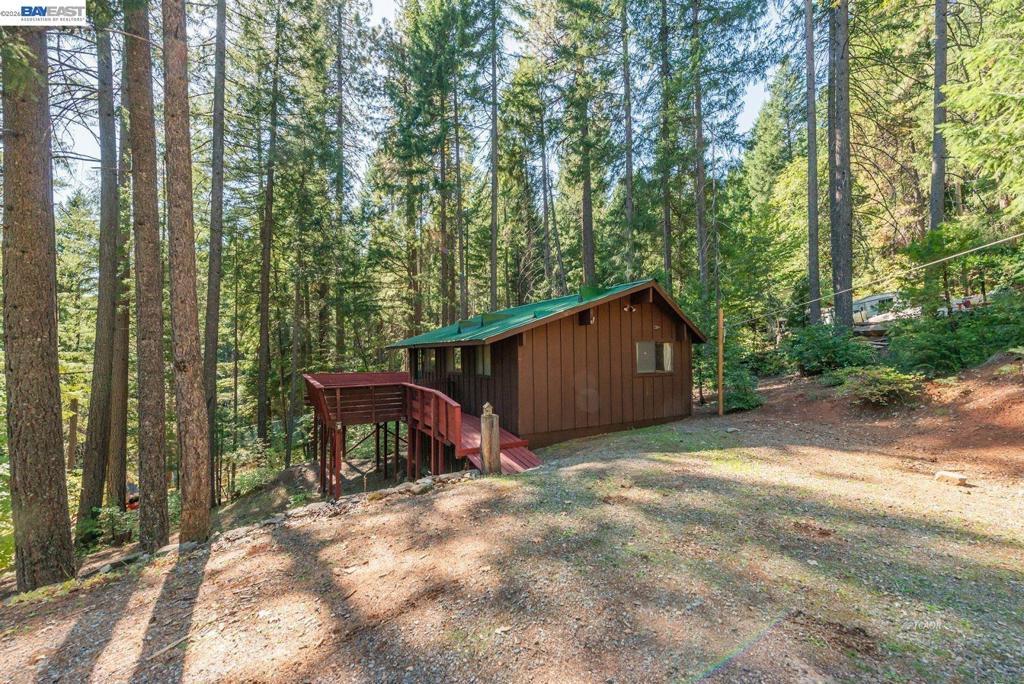 Nestled at the foot of the stunning Trinity Alps Wilderness, this charming 980 sq. ft. cabin captures the essence of mountain living and lakeside relaxation. Featuring beautiful T & G hemlock wood and vaulted ceilings, this inviting retreat offers a warm, rustic atmosphere throughout. The main level features a cozy one-bedroom, one-bath layout, with the kitchen conveniently centered in the heart of the home-perfect for easy gatherings, great natural light that enhances the cabin's serene charm. Downstairs, a walkout basement provides additional sleeping space with two large beds, ideal for guests or family getaways. Step outside to enjoy the expansive wraparound deck-perfect for relaxing, entertaining, or taking in the forested scenery. Built with quality in mind, the cabin features redwood board-and-batten siding, a durable metal roof, and ample decking. Sitting on .43 of an acre, there's plenty of room for boat or RV parking-and with Trinity Lake right across the street, your next adventure is always within reach! Whether you love boating, fishing, backpacking, hiking, or camping this property is your gateway to the great outdoors. Enjoy peace, privacy & endless recreation.