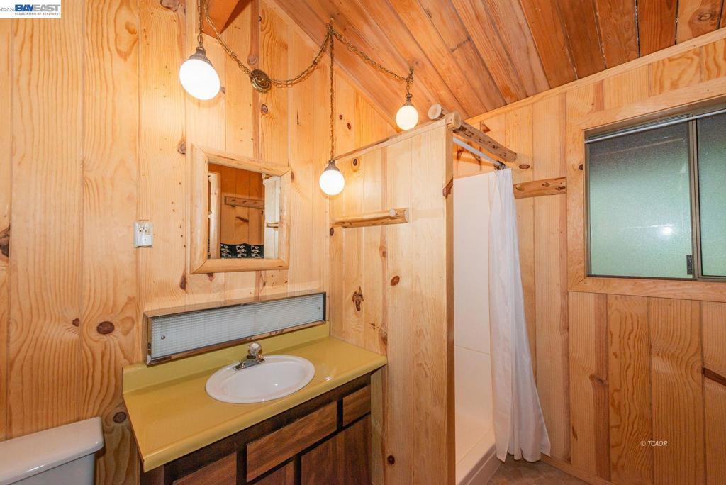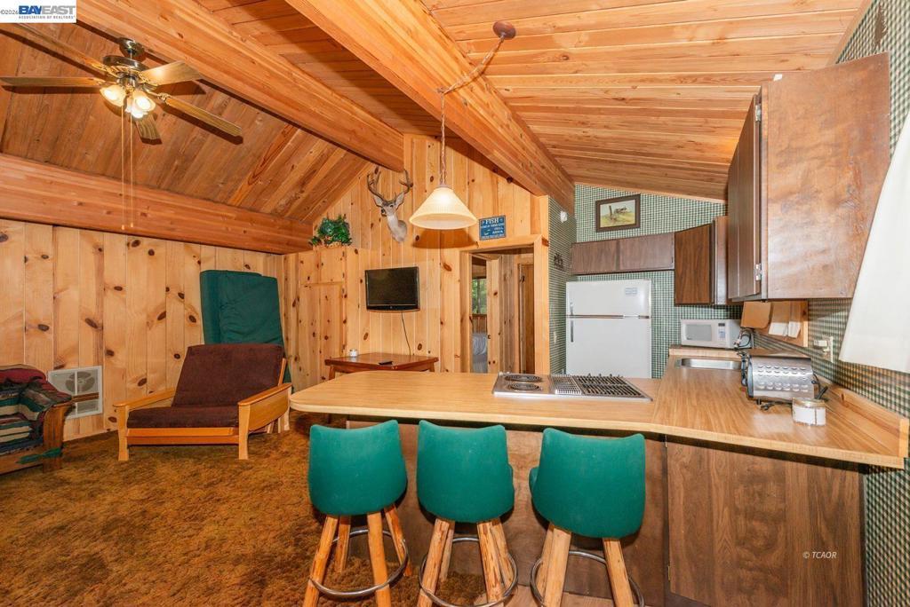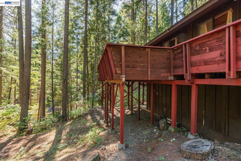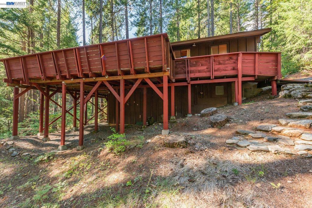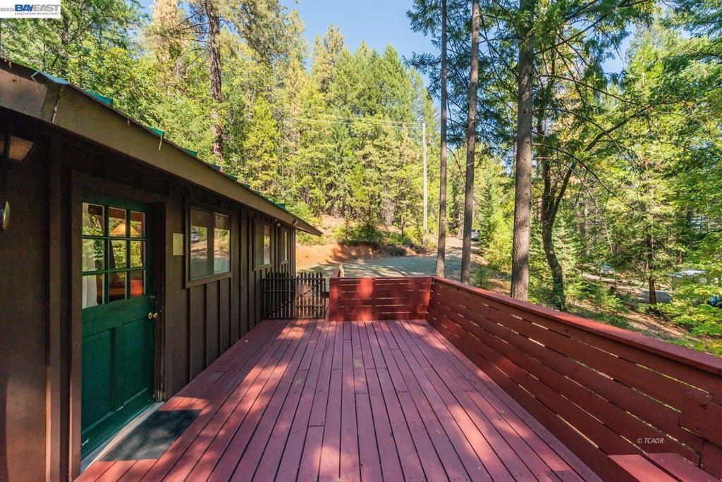 Nestled at the foot of the stunning Trinity Alps Wilderness, this charming 980 sq. ft. cabin captures the essence of mountain living and lakeside relaxation. Featuring beautiful T & G hemlock wood and vaulted ceilings, this inviting retreat offers a warm, rustic atmosphere throughout. The main level features a cozy one-bedroom, one-bath layout, with the kitchen conveniently centered in the heart of the home-perfect for easy gatherings, great natural light that enhances the cabin's serene charm. Downstairs, a walkout basement provides additional sleeping space with two large beds, ideal for guests or family getaways. Step outside to enjoy the expansive wraparound deck-perfect for relaxing, entertaining, or taking in the forested scenery. Built with quality in mind, the cabin features redwood board-and-batten siding, a durable metal roof, and ample decking. Sitting on .43 of an acre, there's plenty of room for boat or RV parking-and with Trinity Lake right across the street, your next adventure is always within reach! Whether you love boating, fishing, backpacking, hiking, or camping this property is your gateway to the great outdoors. Enjoy peace, privacy & endless recreation.