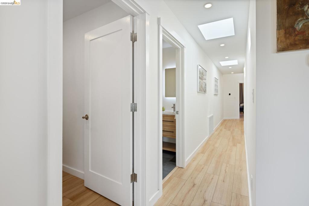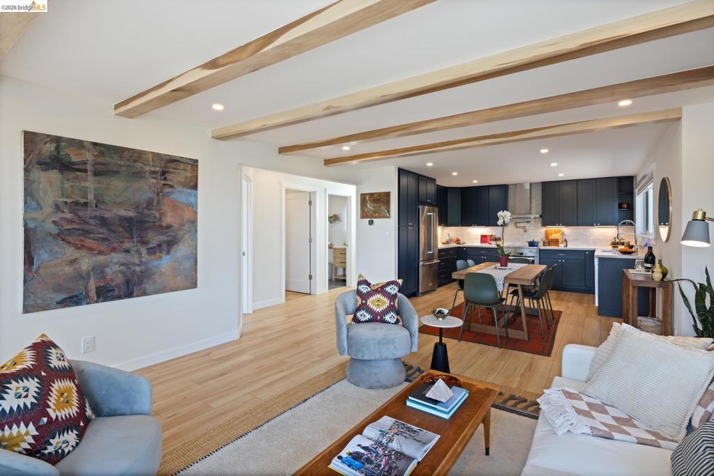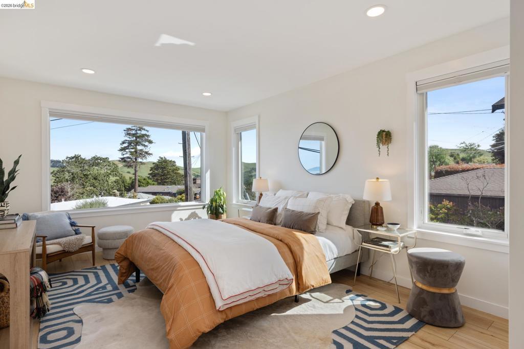 Welcome to 6808 Del Monte—an exceptional residence where refined design meets effortless California living, with stunning views of the SF Bay and Wildcat Canyon Hills. Thoughtfully rebuilt with a modern aesthetic and timeless appeal, this sophisticated home offers an elevated lifestyle in a desirable setting. Completely reconstructed down to a single remaining wall, the home features all-new electrical and plumbing, a new roof, 95% of the foundation, and a state-of-the-art solar system with storage batteries and an EV charger—delivering both sustainability and efficiency. Inside, a light-filled interior showcases expansive windows, clean architectural lines, and high-end finishes throughout. The open-concept living and dining areas flow seamlessly, ideal for everyday living and entertaining. The beautifully updated kitchen features premium appliances, sleek cabinetry, and stylish surfaces. Generously sized bedrooms and spa-inspired bathrooms offer comfort and tranquility, while the primary suite serves as a true sanctuary. The private backyard embraces a natural setting, offering a low-maintenance landscape with ample potential to create a beautiful garden retreat. Ideally located near Wildcat Canyon trails, the serene Gyuto Foundation, and convenient to the Arlington Market.