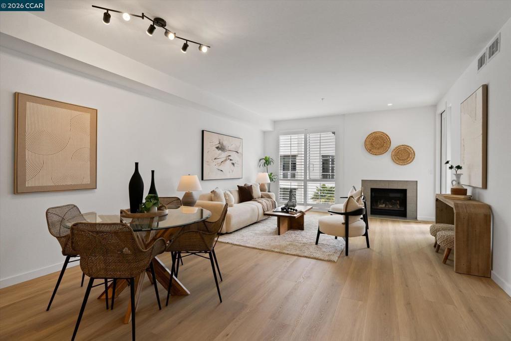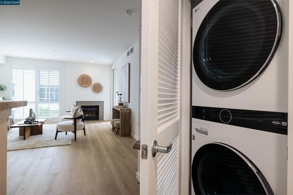 This beautifully updated, truly move-in ready 1-bedroom, 1.5-bath home offers a rare combination of comfort and convenience, highlighted by two side-by-side parking spaces—an exceptional find in the area. The open-concept layout includes a private balcony, adding desirable indoor-outdoor living. Recent upgrades include new LVP flooring, a new water heater, and stainless steel appliances, along with freshly painted interiors. The kitchen features stone countertops and opens to the main living area, creating a seamless space for both everyday living and entertaining. A guest powder room and in-unit washer/dryer add everyday convenience, while the spacious primary suite offers a comfortable retreat. Enjoy resort-style amenities including a pool, spa, fitness center, and BBQ area. Just a short walk to BART and the shops and restaurants of vibrant downtown Walnut Creek, this home delivers an unbeatable combination of location, lifestyle, and value.