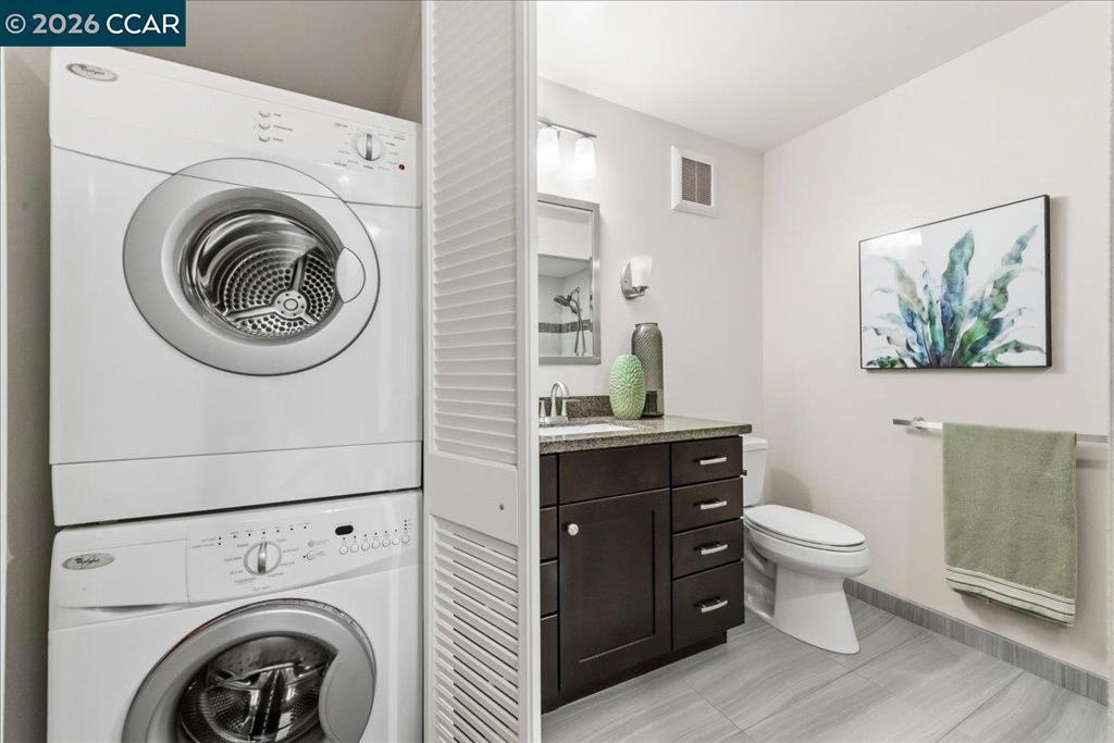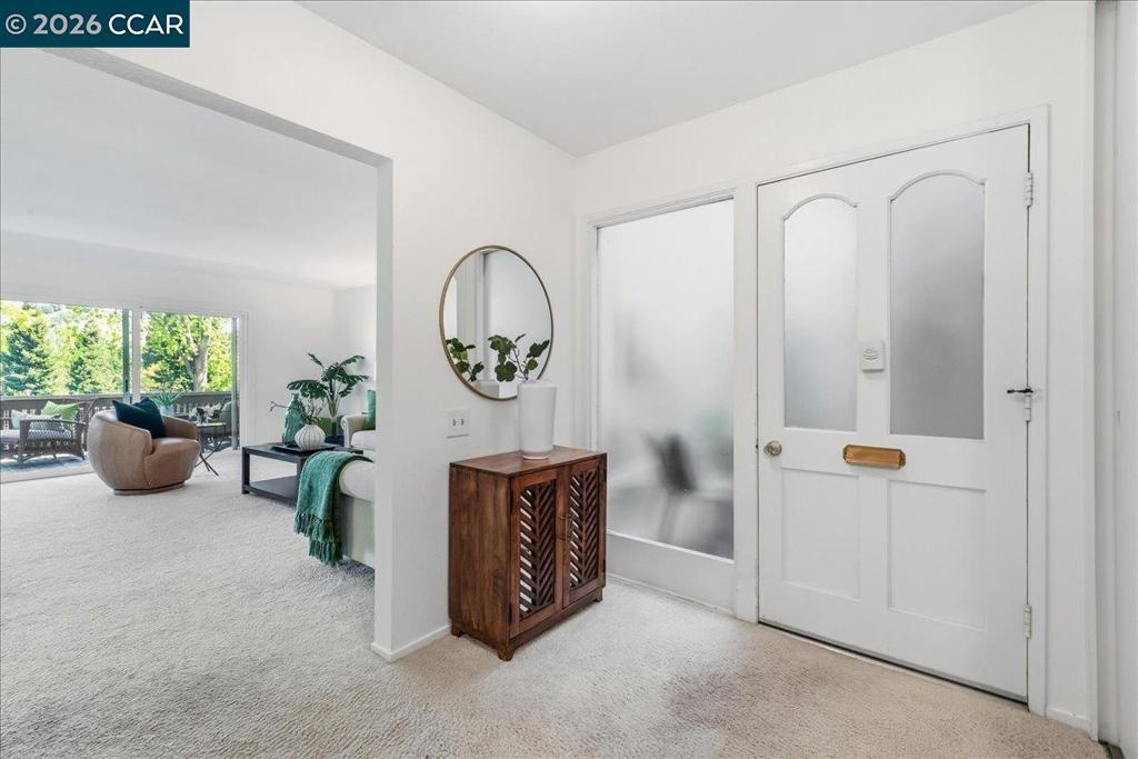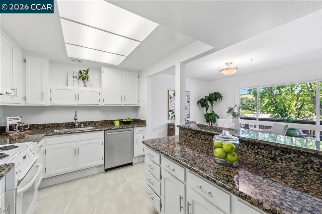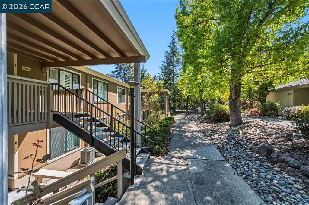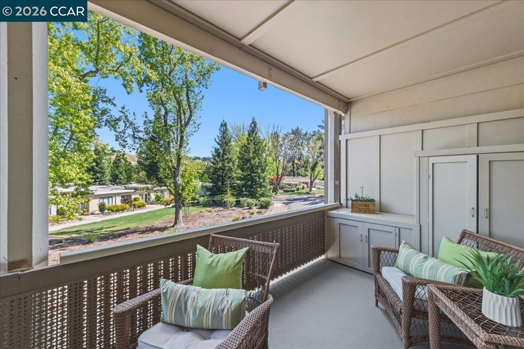 Delightfully light and bright Sonoma co-op beckons with updated kitchen and bath, fresh paint, and a truly wonderful hill and tree view, (one of the best for a Sonoma!) from an open balcony, just steps from the vibrant Gateway Clubhouse in Rossmoor, the premier 55+ active adult community. Enjoy a sparkling white kitchen with granite counters and vinyl flooring; remodeled bath with large tiled stall shower, granite vanity and stacked washer/dryer; smooth ceilings throughout, dual pane window and slider, plantation shutters in bedrooms, and a brand new water heater. Enjoy an ideal location close to carport and the many activities of Gateway, including Friday Farmers Market, movie theatre, library, arts and crafts studios, and all the amenities of Rossmoor. Welcome home!