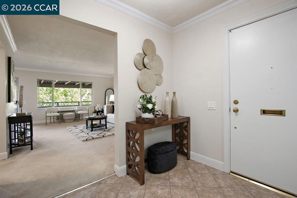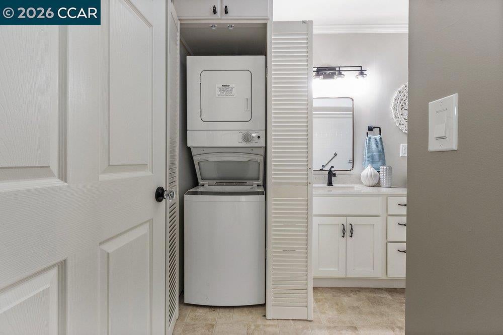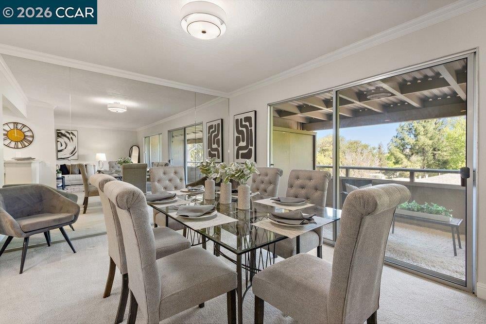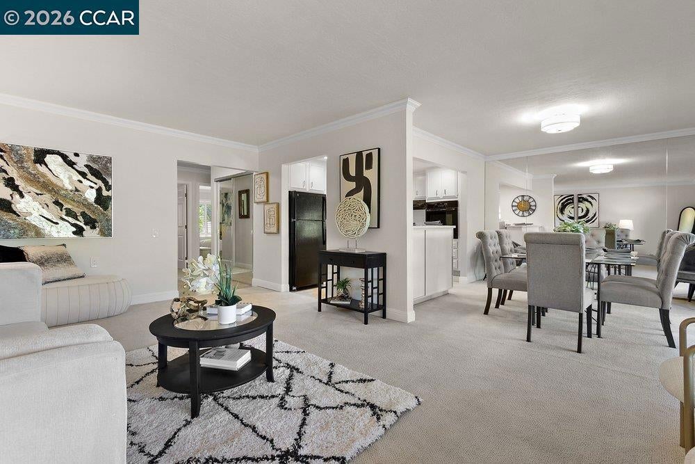Upper 2 bed/ 1 bath Saratoga Co-op. Stylish, well maintained, plantation shutters in bedrooms, stacked washer/dryer. Fresh interior paint, plush carpet, smooth ceilings, crown moulding and baseboards. Peaceful view of trees and hills from dining room and exterior balcony. Cheerful morning sun and afternoon shade. Enjoy Rossmoor’s 55+ lifestyle, gold, tennis, pickle ball, workshops, clubs, fitness facility, event center and more.