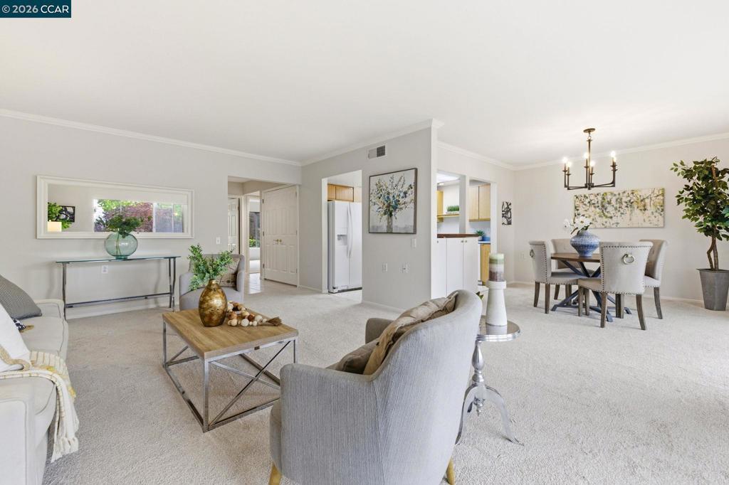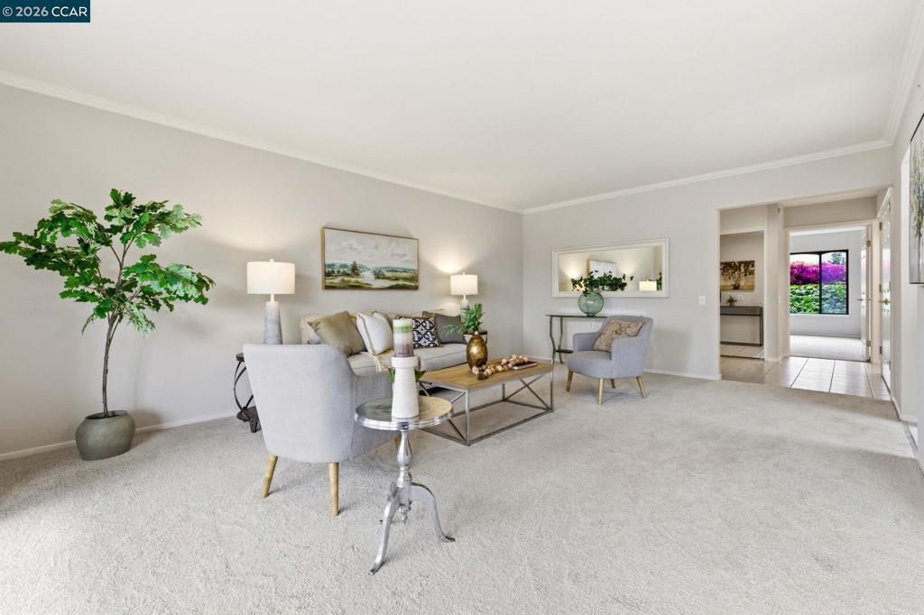 Bright single-level Sonoma model with an enclosed patio, set within the sought-after Rossmoor 55+ community. Freshly painted interiors & recently replaced carpet create a clean, move-in ready feel, while large windows & sliding doors extend the main living area into the enclosed patio, ideal for hobbies, a reading space, or additional lounge area. The living & dining areas are generously sized & connected, creating an easy flow for everyday living & entertaining. The kitchen is positioned just off the dining area with ample cabinetry, generous counter space & a practical layout that supports daily use & hosting. Both bedrooms are well-proportioned with natural light & generous closet space, offering flexibility for guests or a home office. The bathroom includes a vanity with storage & a shower-over-tub combination. In-unit laundry adds convenience, while dedicated parking & additional storage enhance functionality. Located in Rossmoor, residents enjoy a vibrant, resort-style 55+ lifestyle with access to clubhouses, pools, fitness centers, walking trails, golf, tennis, organized clubs, classes & social events. Nearby shopping, grocery stores & local eateries are just minutes away, with close proximity to Downtown Walnut Creek, BART & major commute routes.