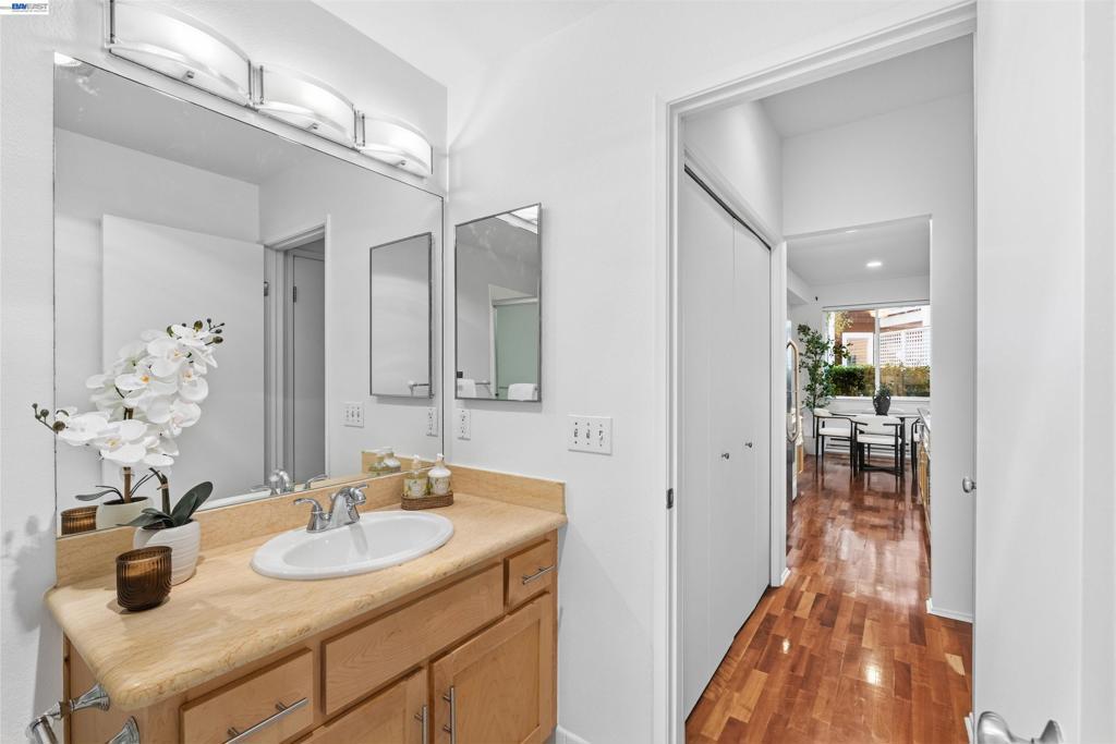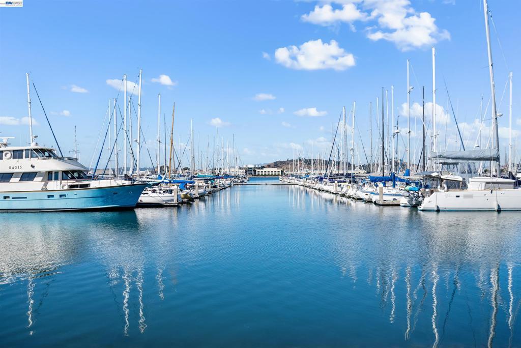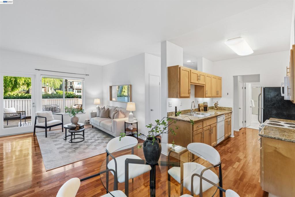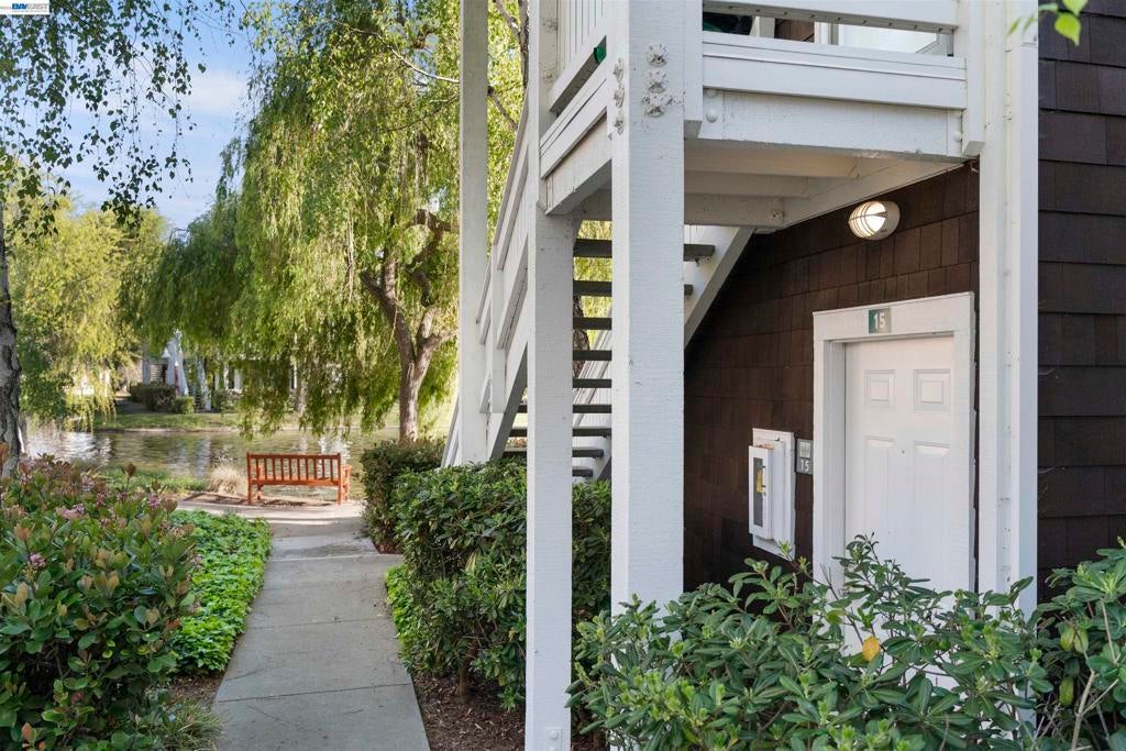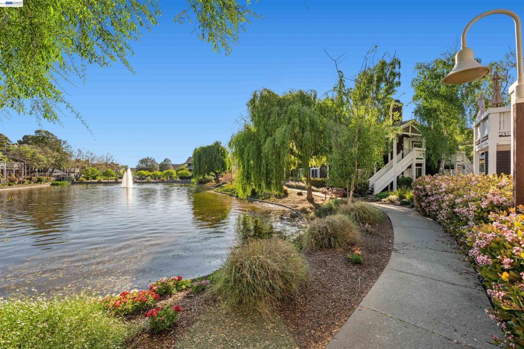Welcome to this prime lakeside living in Marina Bay. This corner unit is one of the best in the community. It's a ground-floor home that opens to a bright, airy living and dining area with hardwood floors and a tile fireplace with white mantle. Experience outdoor living through the sliding glass door that leads to a large private covered patio overlooking the lake. The view is framed by a graceful weeping willow and manicured landscaping. The kitchen features granite countertops, light maple cabinetry, a stainless steel sink, and a full appliance suite including refrigerator, dishwasher, and range. A dedicated in-unit laundry with full-size side-by-side washer and dryer. Both bedrooms enjoy the serene lake and garden views, filled with natural light. The full bath features a tub/shower combo with glass sliding doors, maple vanity, and a large wall mirror with bright overhead lighting. The gated Marina Bay community offers resort-style amenities: 2 pools, 2 spas, gym, yoga room, tennis courts, clubhouse, and EV charging. HOA covers water, trash, exterior maintenance, and building insurance. Steps to the Bay Trail and minutes to Point Richmond dining, the SF Ferry, BART, and I-580. A rare opportunity in one of Richmond's most desirable waterfront communities.