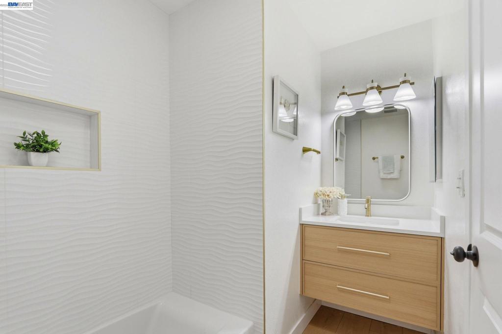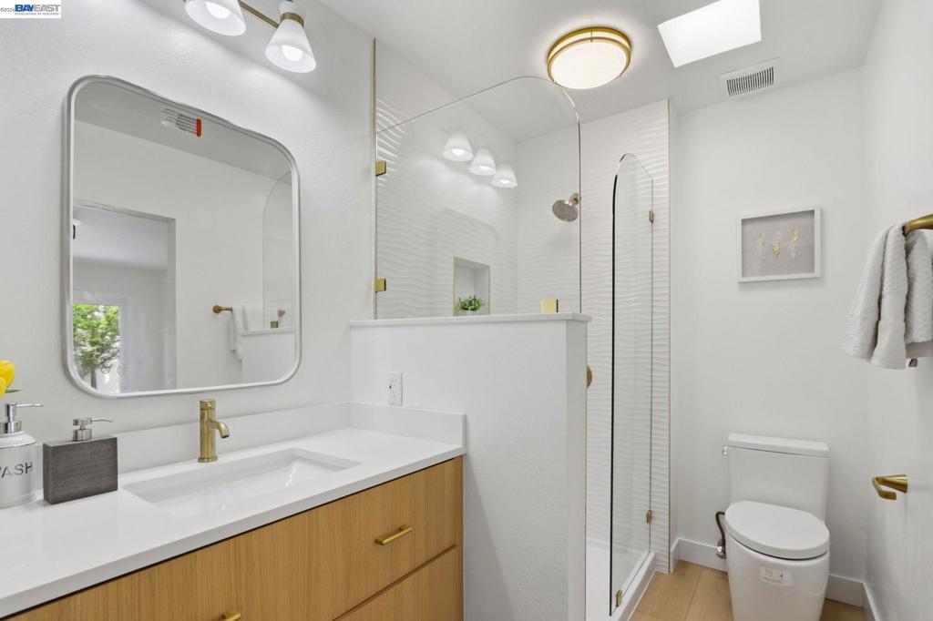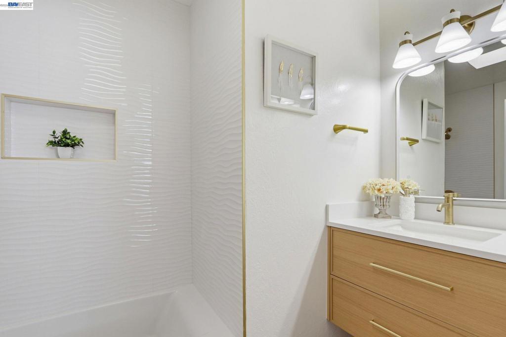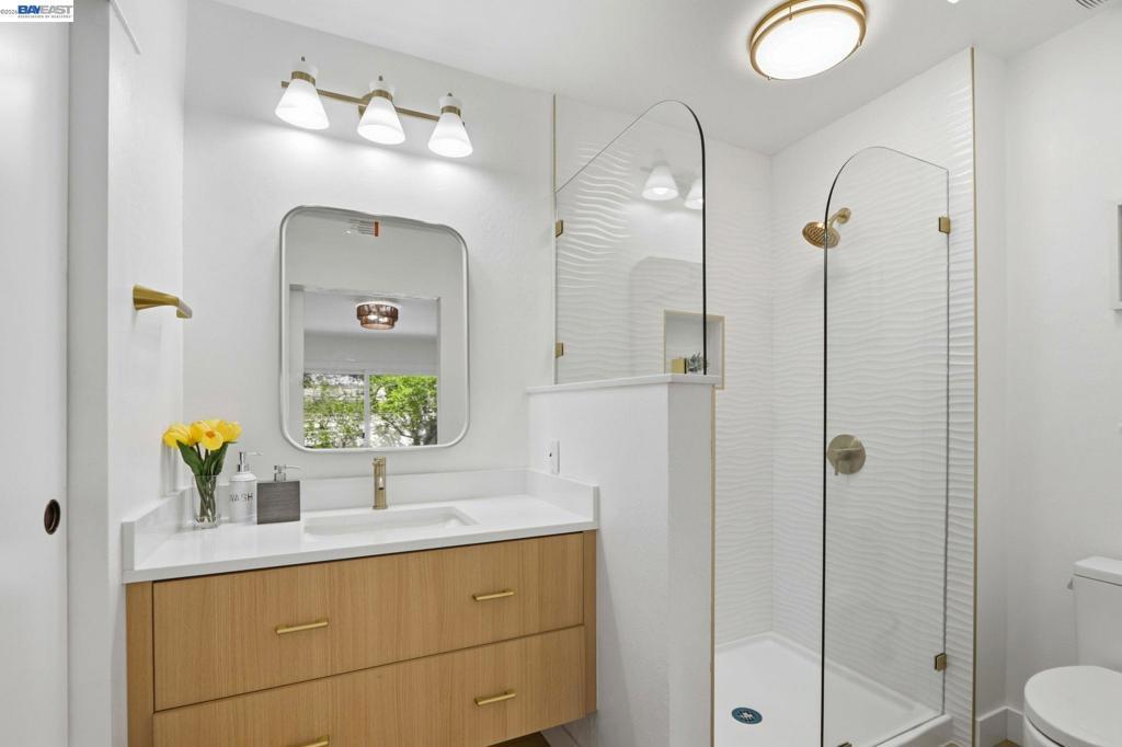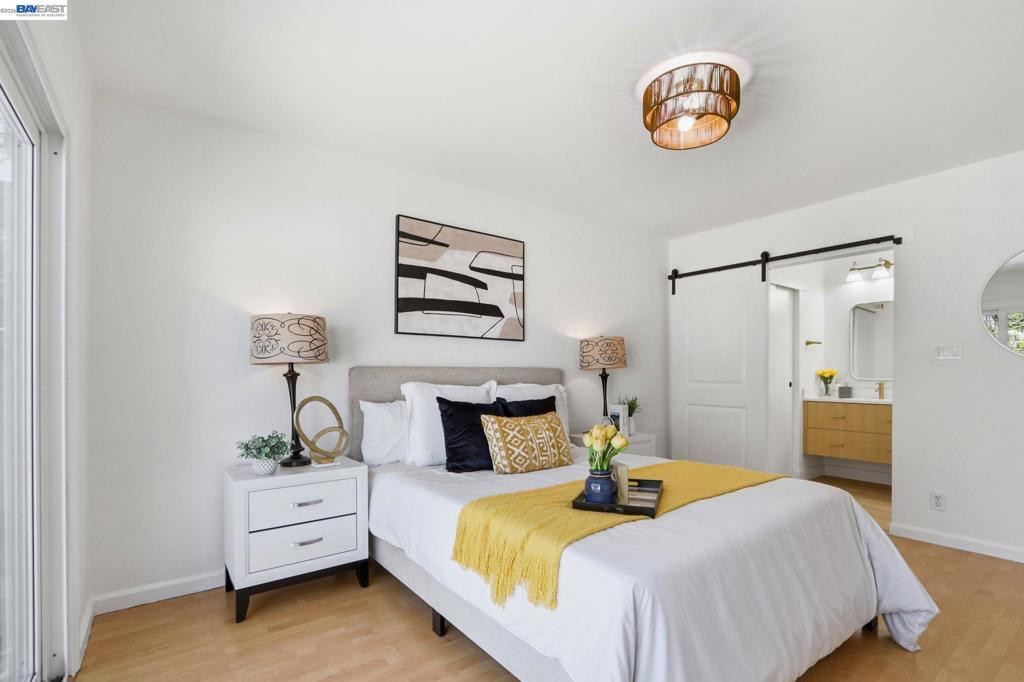 Location is everything! 40930 Rioja Ct. is tucked inside a quiet cul-de-sac in the heart of Fremont's Mission San Jose neighborhood. It offers you outstanding Mission Schools and a short walk to Central Park and Lake Elizabeth. It's close to BART, 880, 680 & 84. This light-filled home is wrapped around by roses and fruit trees. Both bathrooms were beautifully renovated in March with a modern style. The spacious primary ensuite includes a new bathroom enclosed by barn-house door. Custom design includes: floating vanities, mirrors with fog-defrost light, new shower, custom-glass-enclosure, satin-gold faucets/shower/towel accessories and matching light fixtures. The contemporary flare extends beyond the bathrooms. There are 13 New lights, 7 new doors, all new matt-black finish knobs and hinges. The kitchen has new faucets, hood, and cabinet door handles. The home owner's love for gardening shows throughout this adorable home. You will be greeted by blooming roses as you approach the house and feel instantaneously relaxed in the sunny backyard lined with fruit-bearing trees, including Apple, Orange, Tangerine, Yellow Peach, White Peach, Pomegranate, Lemon and Plums. The spacious 2-car garage has EV-charging.