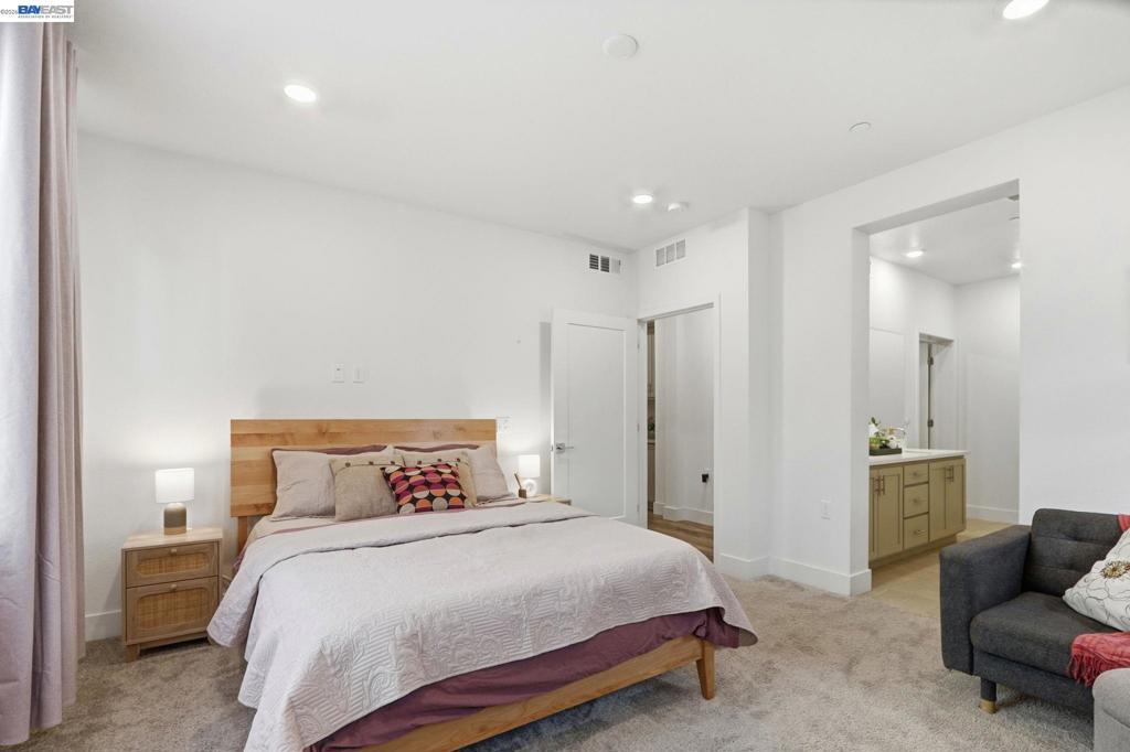 Modern & Luxury living. Security building and no stairs. Private garage with A rare and exceptional opportunity to own a luxury residence in one of Fremont's most desirable neighborhoods. This corner unit offers a unique vantage point and enhanced privacy. The interior is flooded with abundant natural light through wall-to-wall windows and enhanced by soaring ceilings, with mountain and city views. Nestled in a resort-style community, this home provides access to a large range of amenities: a fully equipped gym, relax by the pool, or host gatherings at the clubhouse and BBQ areas. The community also features parks, play structures, and bocce ball courts. Perfectly located for commuters, you are near major highways I-680 and I-880, and just a short distance from the BART station. The expansive primary suite offers a generous walk-in closet and a spa-like ensuite bath, while two additional bedrooms provide space for family or a home office. The grand living area flows into a chef-inspired kitchen with an oversized island ideal for entertaining. Additional highlights include LVP flooring, in-unit laundry, an attached two-car garage with an EV-ready outlet, owned solar panels, and the peace of mind of Lennar's 10-year structural warranty.