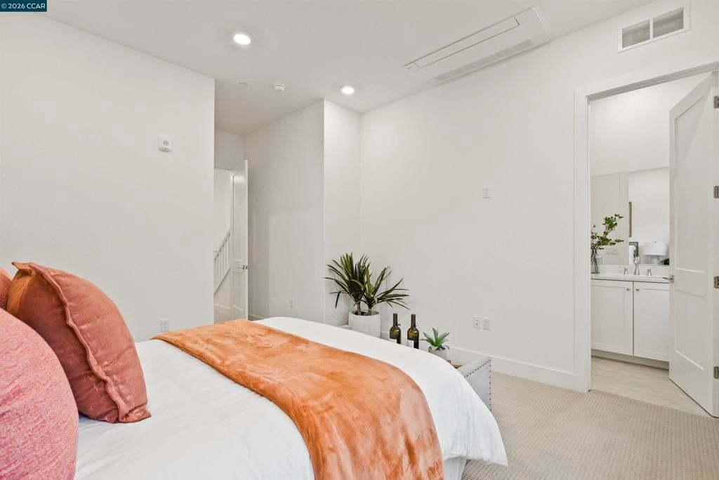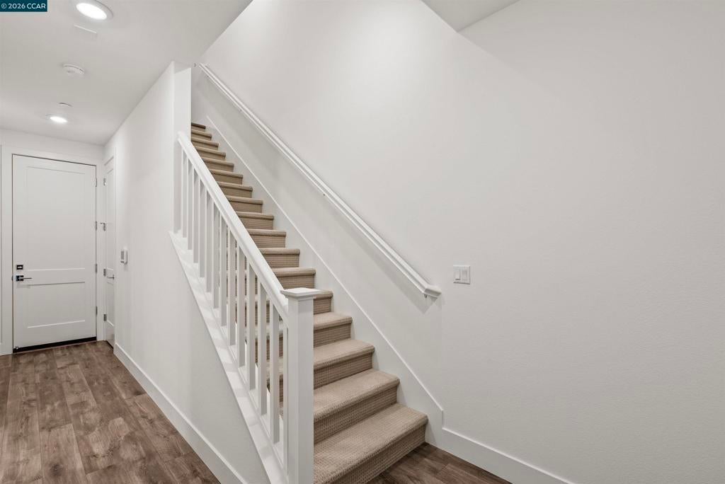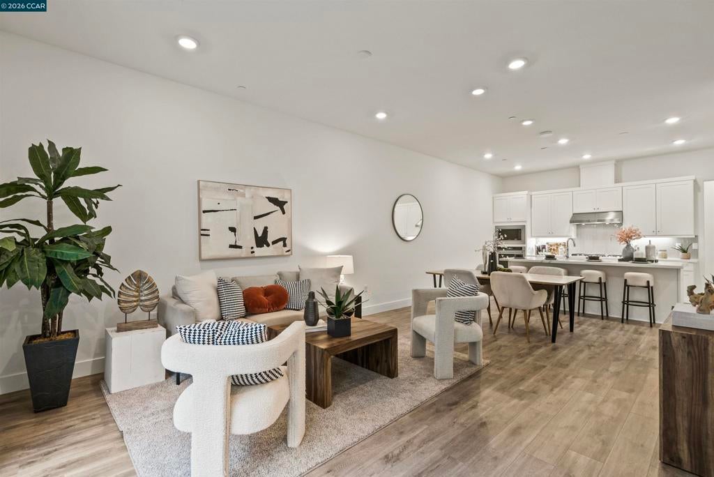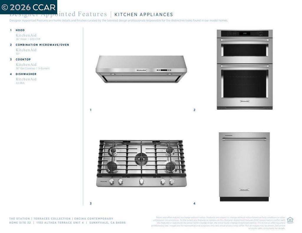 Connect with what matters most at Terraces at The Station, a new townhome community in Sunnyvale, the heart of Silicon Valley. A truly accessible home with a room on every level. Craftsman style stairs flow up to the bright living level on the second floor, revealing the spacious great room, covered balcony, and casual dining area. The designed kitchen is highlighted by a large center island with breakfast bar, Energy Star KitcheAid stainless steel appliances, modern cabinets, quartz countertops with designer tile backsplash. The third floor, the gracious primary bedroom suite is enhanced by an ample walk-in closet and a gorgeous primary bath with a dual-sink vanity, a large luxe shower with seat enhanced by clear-glass enclosure. Thoughtfully designed interiors with 8-foot doors, 5-1/2" baseboards, and modern energy-saving LED integrated recess lights throughout. Finished 2-car garage includes pre-wired plug with 50 amps for electric car charging. Enjoy the community clubhouse, indoor/outdoor lounge area, fireplace, bocce ball court, dog park, walking paths and expansive lawns. Terrace at the Station is located near Santana Row, Valley Fair Mall, Shopping Centers. Close to VTA Light Rail, Lawrence Caltrain and Bart. (photos not of actual home, for marketing only)