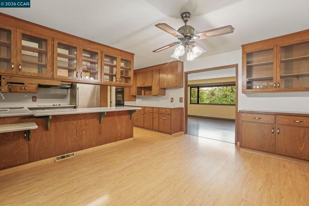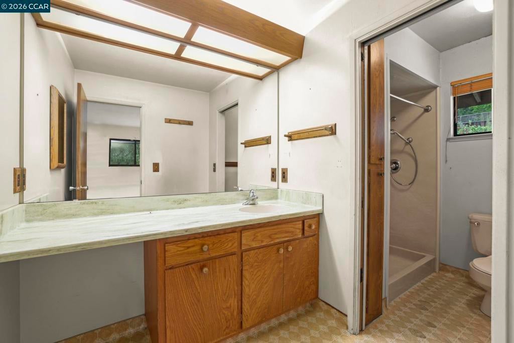 Bring your vision and your rehab skills to this exceptional split-level property. Set back from the street for privacy, this home offers 1894 sq. ft. of living space on the upper level, PLUS an additional approximately 614 sq. ft. of below-grade area downstairs that is not included in the listed square footage. The main living area features a spacious layout with a large picture window overlooking the grounds, a dedicated dining area, and a separate laundry room. There are three generously sized bedrooms, including a primary suite with direct access to the back patio and yard. The downstairs bonus area—complete with a full bathroom and its own separate entry—is ideally suited for a new primary suite, a private guest wing, a home office, or a spacious family room. The expansive .65-acre lot provides a level area for entertaining and play, transitioning into a beautifully terraced landscape with a greenhouse and established gardening areas. With its tranquil environment and views of the rolling hills, the property offers significant potential for expansion or the addition of an ADU. Just minutes from downtown Walnut Creek’s premier shops and restaurants, local open spaces, and easy freeway access. Located within the highly-rated Walnut Creek School District.