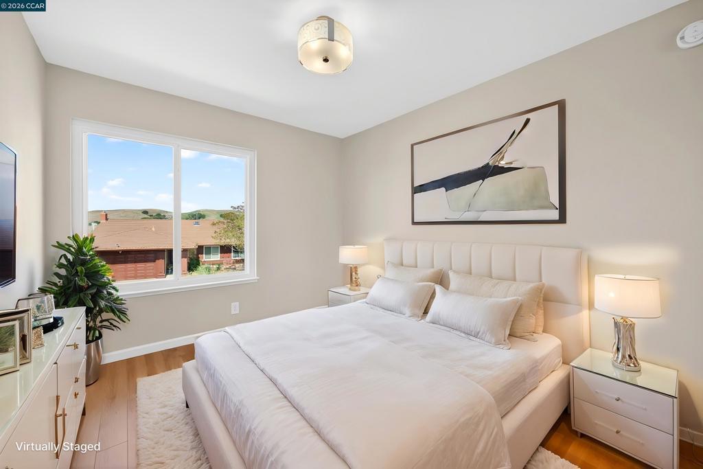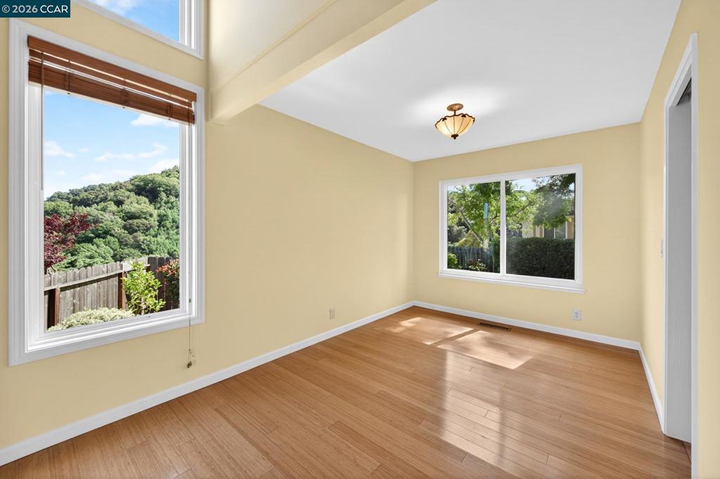 Tucked away on a quiet Cul-de-sac, this home offers a rare blend of privacy, scenery, and convenience. Enjoy breathtaking views of mountains, canyons, greenbelt, and even bay water views from the bedrooms upstairs. Nearly every window captures stunning natural surroundings, creating a peaceful and inspiring atmosphere. Set in a very private setting, this property is ideal for those who value tranquility while staying close to everything. Conveniently located with an easy commute to San Francisco (approx. 25–35 min), it offers the perfect balance between quiet living and city access. Lovingly maintained by the same owners for many years, the home features manicured front & back yards, a private backyard with a covered patio perfect for relaxing and enjoying the views. Inside, there is no carpet, only hardwood &laminate flooring throughout, freshly painted interior and exterior, dual-pane windows, new SS appliances (Dec 2025). The living room showcases beautiful high wood-beamed ceilings, while the family room with a cozy fireplace opens to the backyard, creating seamless indoor-outdoor living. Smart floor plan with many custom-built closets. Major updates include a new roof (2024) & new attic insulation (Jan 2026), enhancing energy efficiency, comfort & overall health and safety.