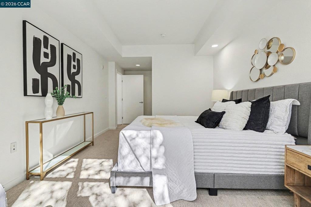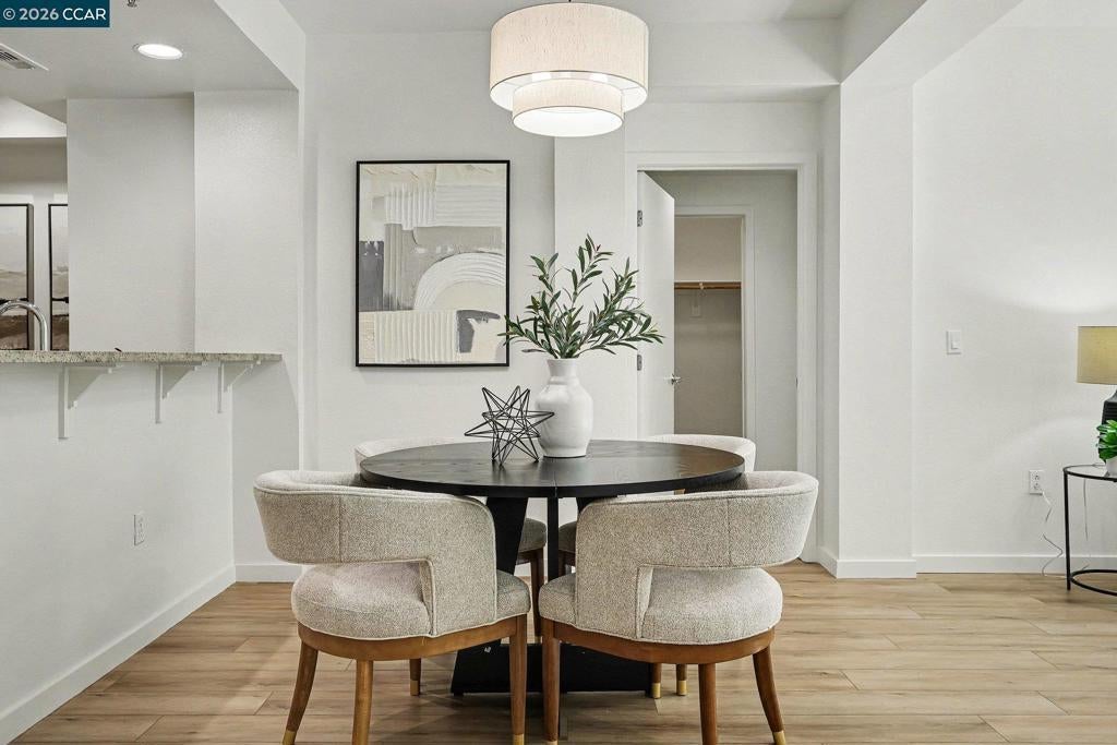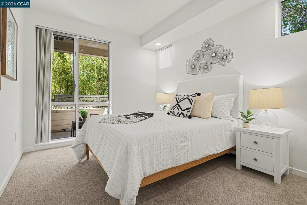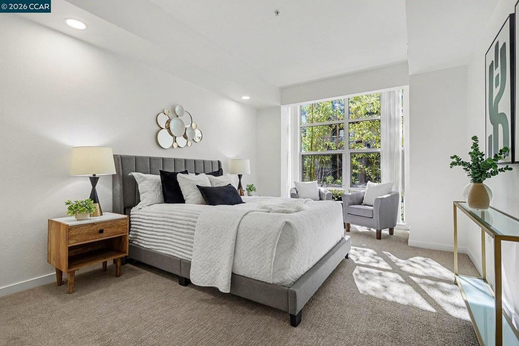 Bright, updated end-unit condo with only one shared wall for added privacy. Corner location brings in abundant natural light with an extra high row of windows facing North, while the quiet rear setting minimizes street noise. Recent upgrades (March/April) include new luxury vinyl plank flooring, new carpeting, fresh paint, new energy efficient LED lighting in the living room and bedrooms (including finaled City permits), new range/oven, new microwave, newer dishwasher (November 2025), new dining room light, and refreshed grout—truly move-in ready and turnkey. Just bring your belongings and settle in. Open kitchen overlooks the living area and features a Sub-Zero refrigerator, stone countertops, and new kitchen appliances. Includes a laundry room with full-size washer/dryer and extra storage. Enjoy the Mercer's resort-style amenities: lap pool, spa, fitness center, BBQ area, and clubhouse. Prime downtown Walnut Creek location near shopping, dining, entertainment, and just blocks to BART. West facing for late filtered afternoon sunlight and overlooking a beautiful grove of bamboo. A pleasure to show, will not disappoint. Seller has spent thousands in the first quarter of 2026 upgrading this amazing condominium home.