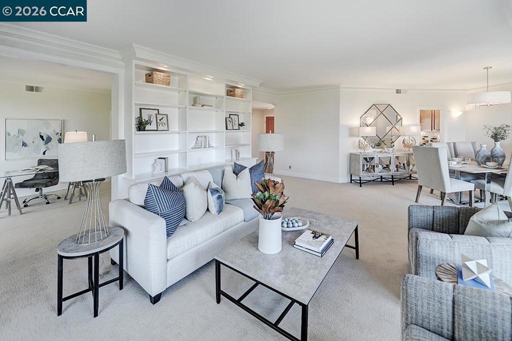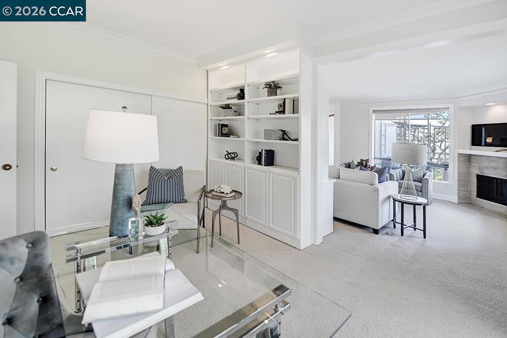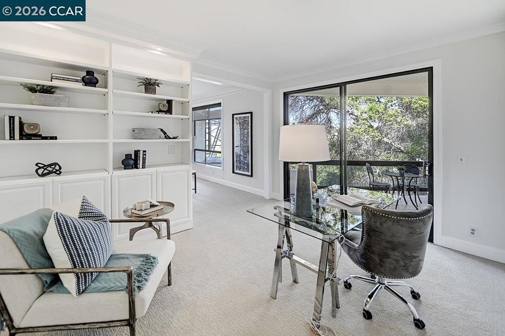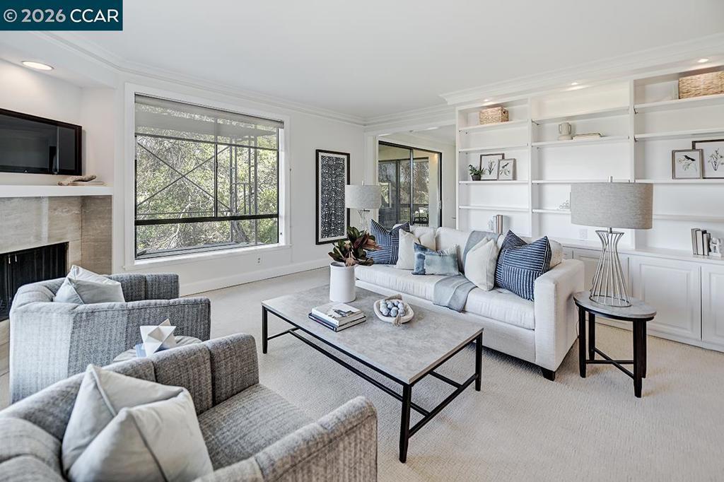 Easy level-in access for this home with beautiful panoramic views. Versatile interpretation of timeless tradition is expressed throughout with dramatic high ceilings and disappearing walls of windows. The kitchen is beautifully updated with rich cabinetry, stainless-steel appliance and an abundance of storage and all the upscale features you would expect in a quality home. Spacious living room is accented with wood burning fireplace and custom built-in cabinets. Two tiled decks for outdoor enjoyment. Den also has custom built-in desk. The laundry room has lots of additional storage cabinets. The master suite is expansive with a lovely sitting area and large walk-in closet/dressing room with organizers. Spa inspired updated baths. In addition, the interior updated décor is also appointed with high-end carpets, custom blended paint, grand crown and base moldings, rare garage and additional carport parking. The distinctive details are endless ....
