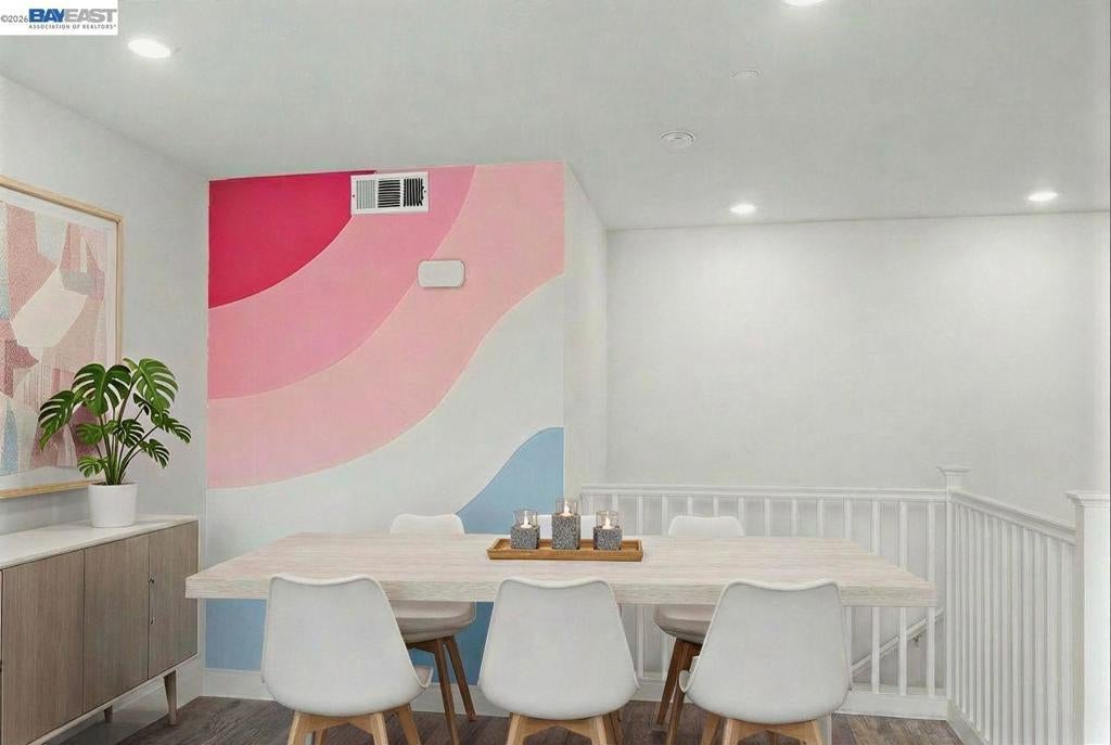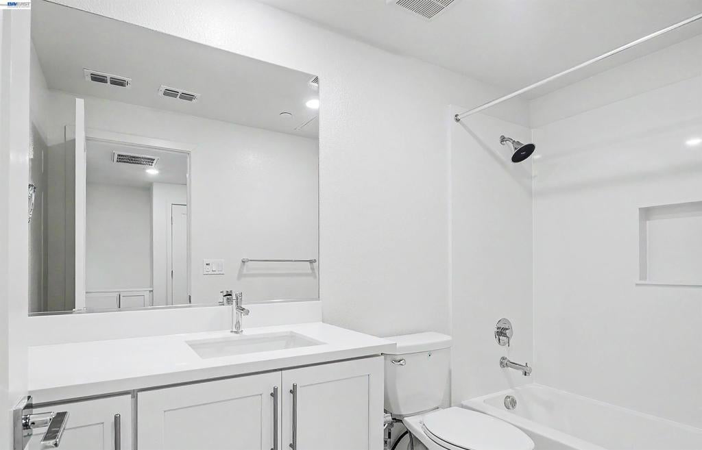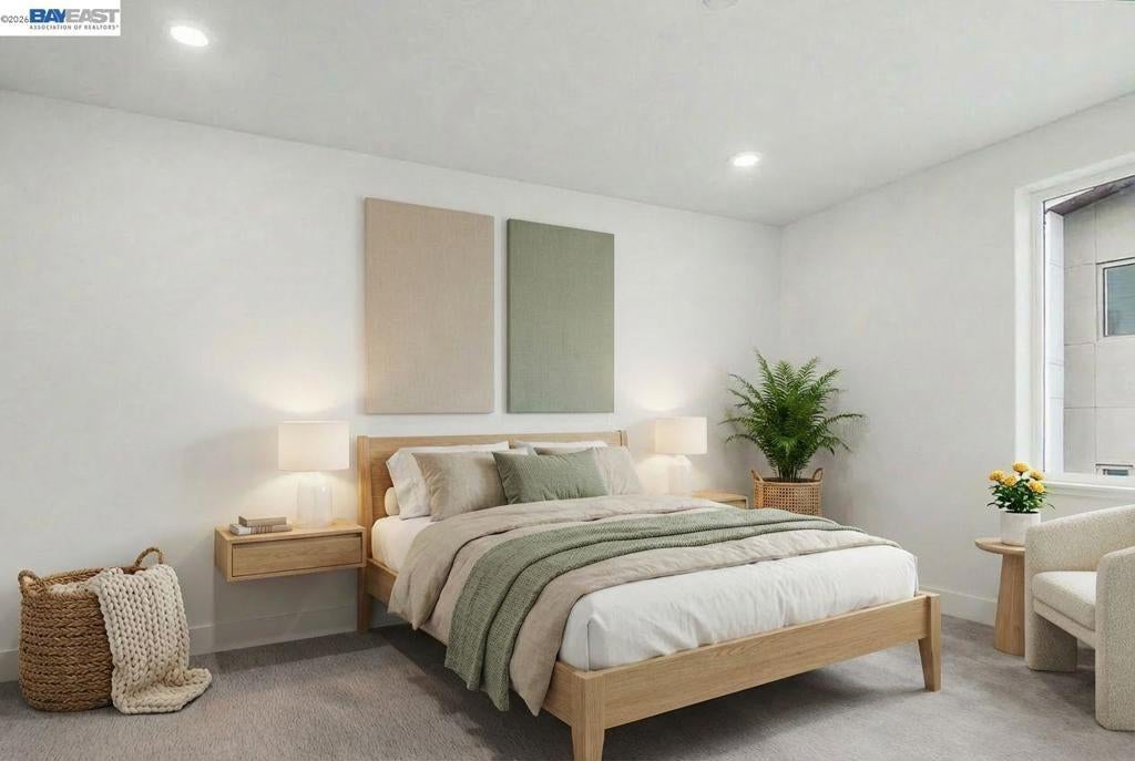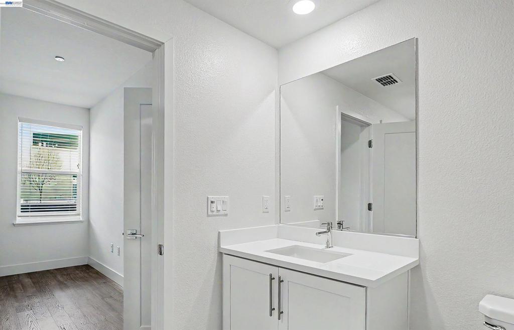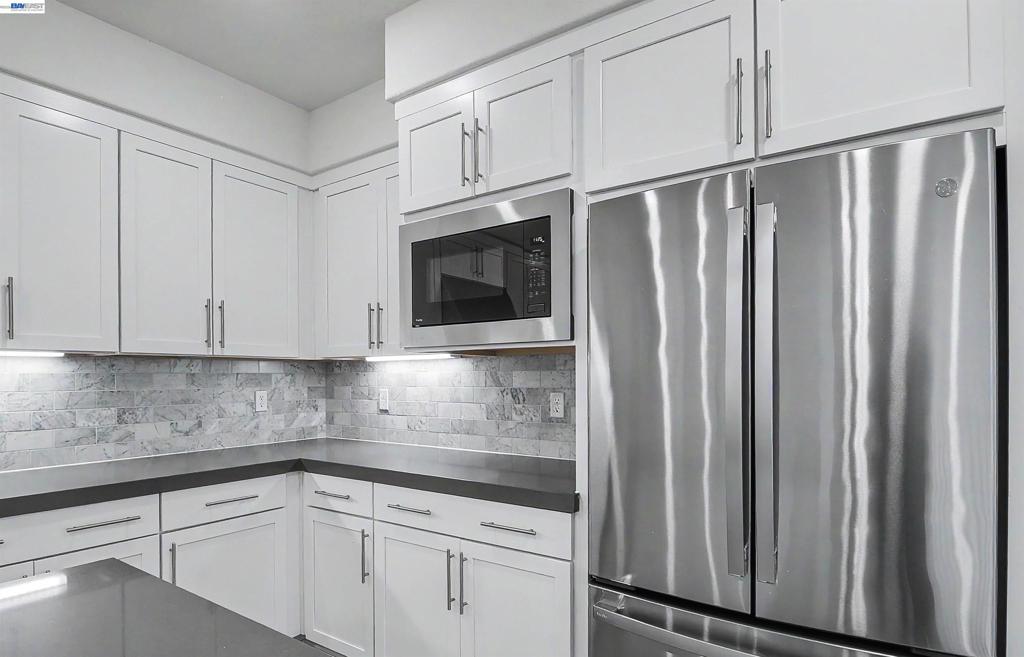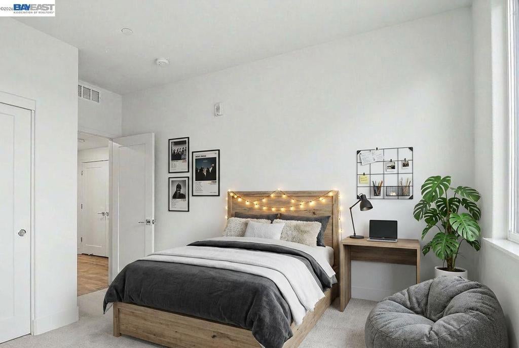 Welcome to this stunning home in Fremont's sought-after Innovation Community, offering one of the best floor plans. Built in 2020, this modern residence features 3 beds, 3 baths, 2 story home, 1798 sqft of bright open living space, and attached 2-car side-by-side garage. The main level includes a private bedroom with ensuite-ideal for guests or a home office. Upstairs showcases a gourmet kitchen with quartz countertops, subway backsplash, oversized island, and premium appliances, flowing into spacious living and dining areas filled with natural light. Enjoy a wraparound balcony perfect for relaxing or entertaining. The primary suite offers a spa-like bath and custom walk-in closet. Upgrades include owned solar panels, EV charger, tankless water heater, water softener, smart home features, Ring doorbell, and a WiFi-enabled garage. Community amenities include pool, gym, clubhouse, and parks. Prime location near BART, major commute routes, and directly across from Lila Bringhurst Elementary School (offers a Mandarin immersion program).