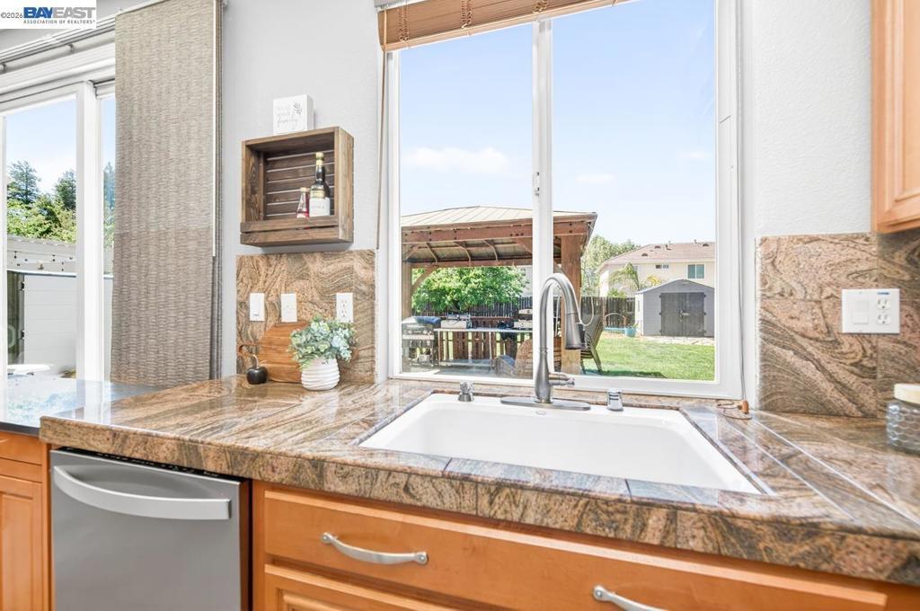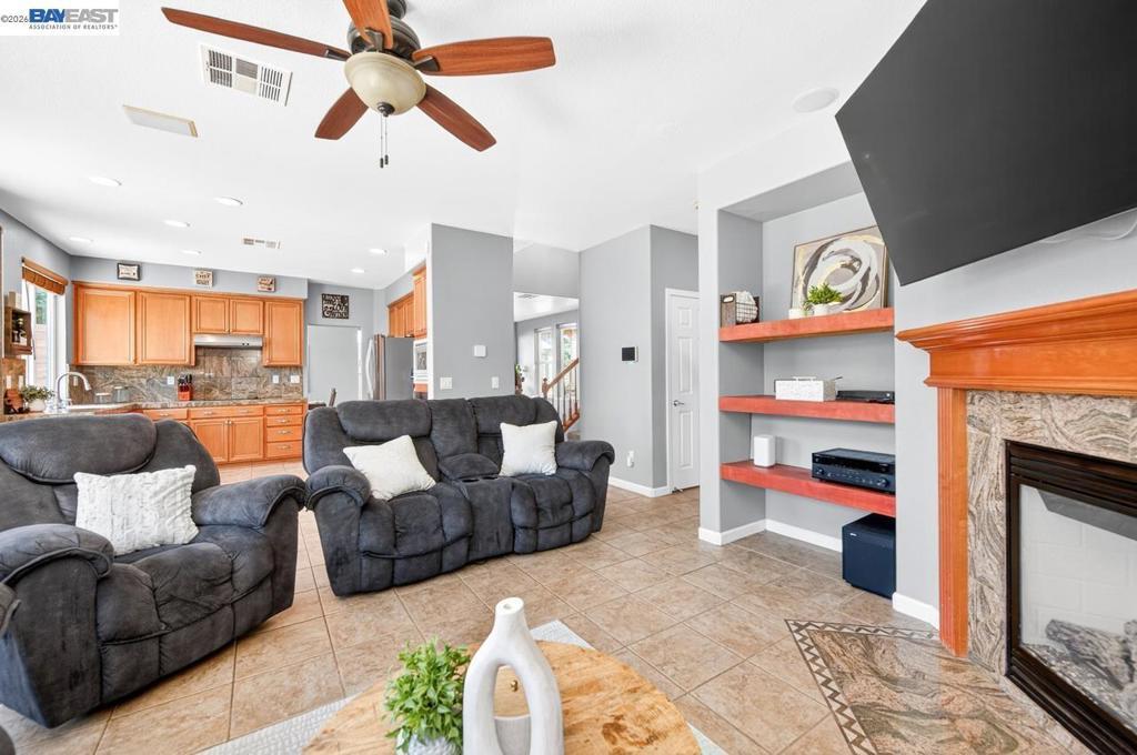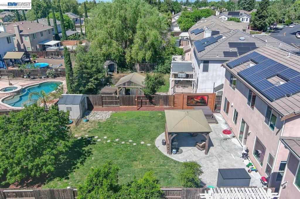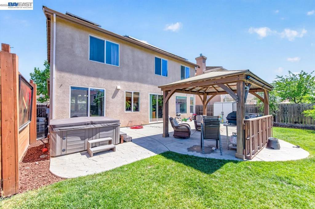 Beautiful 2-story home in desirable Tracy, built in 2005 and offering 4 bedrooms, 2.5 baths, and 2,215 sqft of well-designed living space on a 6,674 sqft lot. Bright, open kitchen features wood cabinetry, stone countertops, stainless steel appliances, and flows seamlessly into the inviting family room with a cozy fireplace and backyard access. Formal dining room and additional living room upon entry provide great space for entertaining. Upstairs offers comfortable, carpeted bedrooms, including a spacious primary suite with double vanity, large soaking tub, and separate shower. Enjoy the expansive backyard with a paved patio, pergola, and hot tub, perfect for relaxing or hosting. Additional highlights include a large storage shed and solar.