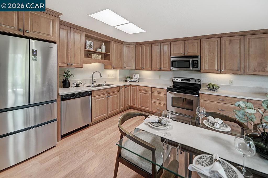 Impressive Single Story, Easy Access Santa Clara model in superior location with a beautiful view of the distance hills and Mt. Diablo beyond. Kitchen has been remodeled providing that highly coveted open concept design with very warm and rich quality features. Large, tiled patio will enhance your indoor~outdoor living lifestyle which will quickly become your favorite place to relax and enjoy with family and friends. The fine features that this home offers are endless with rich hard surface flooring, illuminating skylights, resort inspired updated bathrooms, modernized lighting, dual pane windows, custom window covers, new paint, beaming hard surface flooring, new plush carpet, illuminating skylights, newer HVAC system. Absolutely pristine condition! Lives like a single family home.