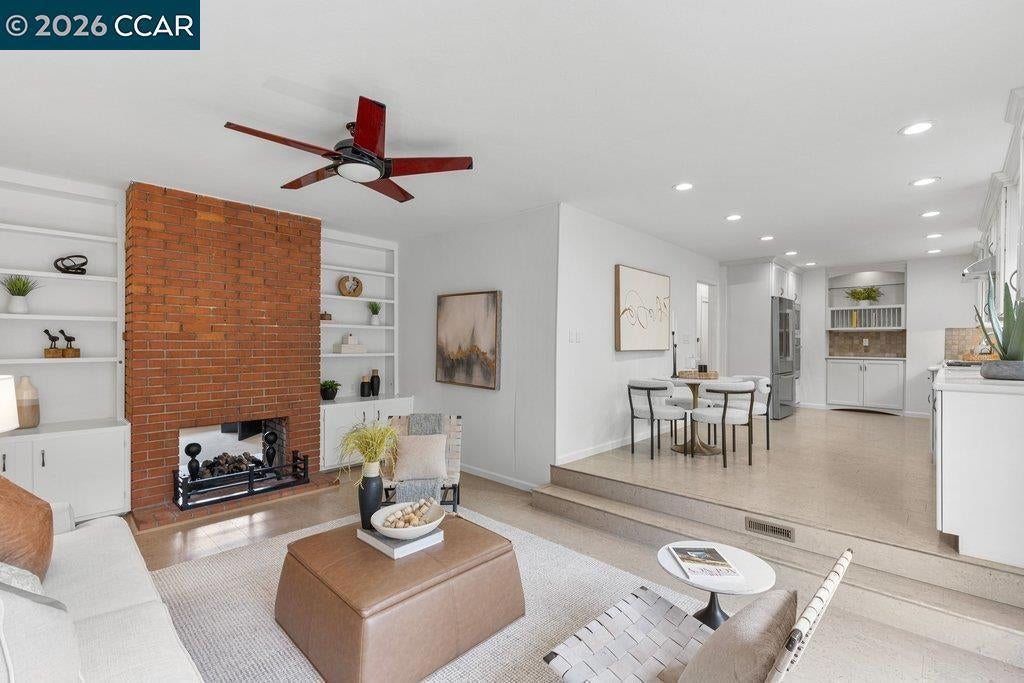 Carriage Square! Huge lot! Set on an oversized, flat lot, this property is defined by its expansive outdoor space, beautiful rose garden, and lush grassy area, creating a private and inviting setting for everyday living and entertaining. With ample room to add a firepit, outdoor kitchen, or expanded entertaining areas, the yard offers exceptional flexibility and scale. The court location enhances both privacy and community, with minimal through traffic in a highly sought-after setting. Inside, the home is anchored by soaring ceilings in the living room and a striking double-sided fireplace, adding architectural interest and warmth to the main living spaces. The thoughtful floor plan includes a main-level bedroom and half bath, ideal for guests, extended family, or a flexible work-from-home setup. Updated kitchen provides immediate livability, while the overall home offers the opportunity to further refine and elevate over time—allowing a buyer to truly make it their own. A similar floor plan recently sold for over $1.6M, making this an excellent opportunity to move in and add value over time. Conveniently located near BART, parks, shopping, dining, and schools!