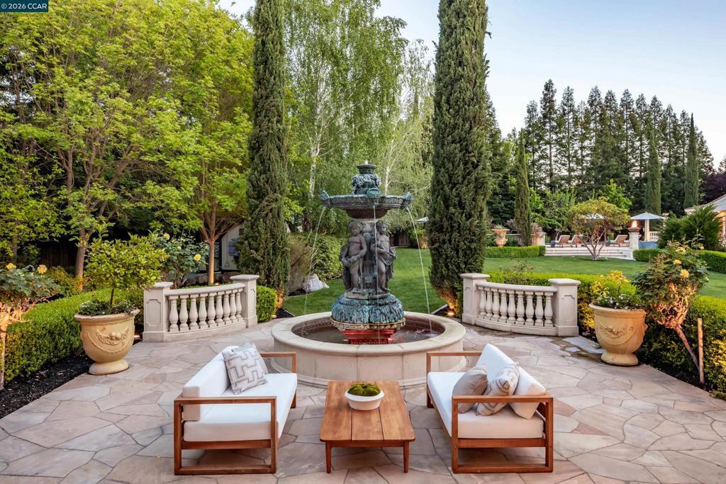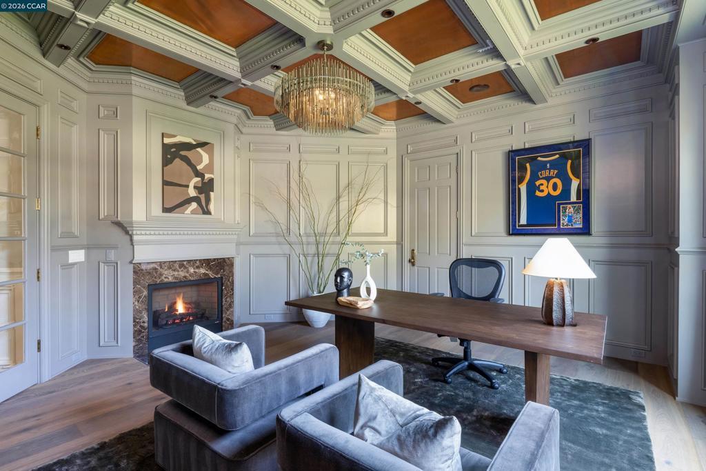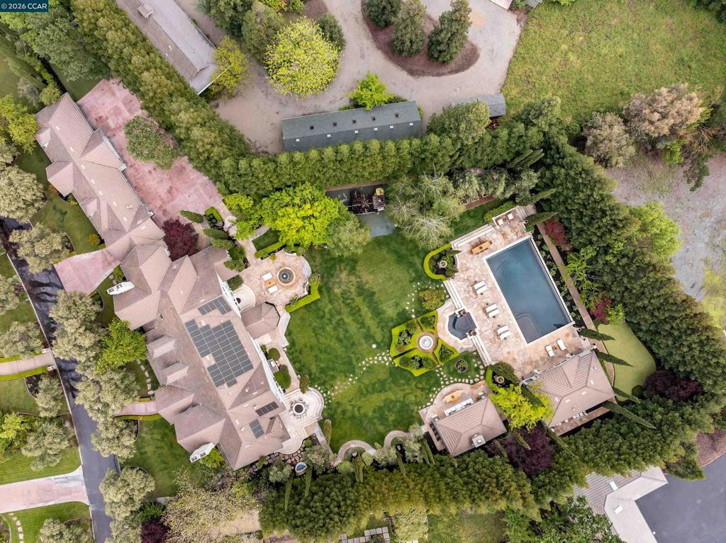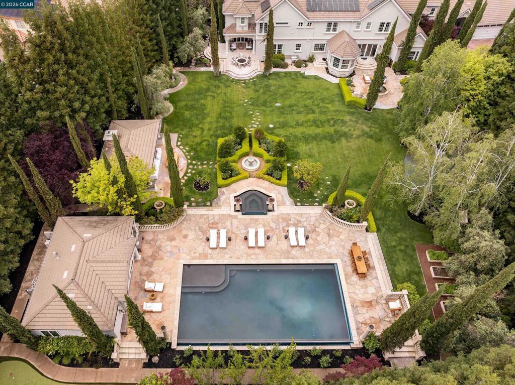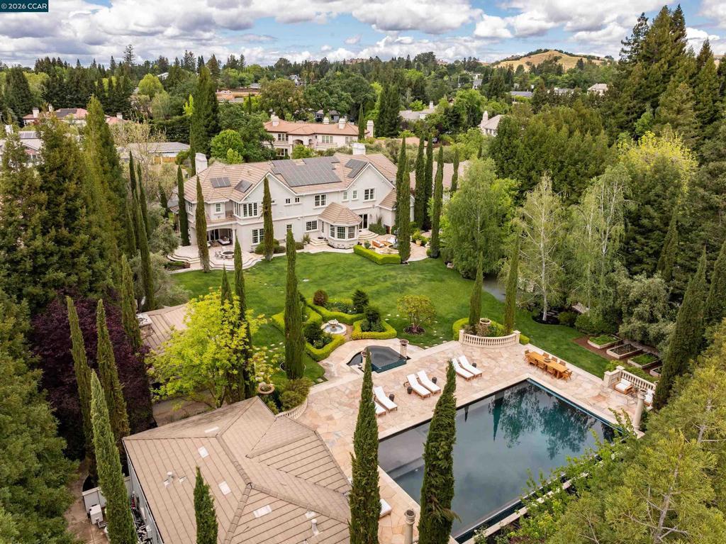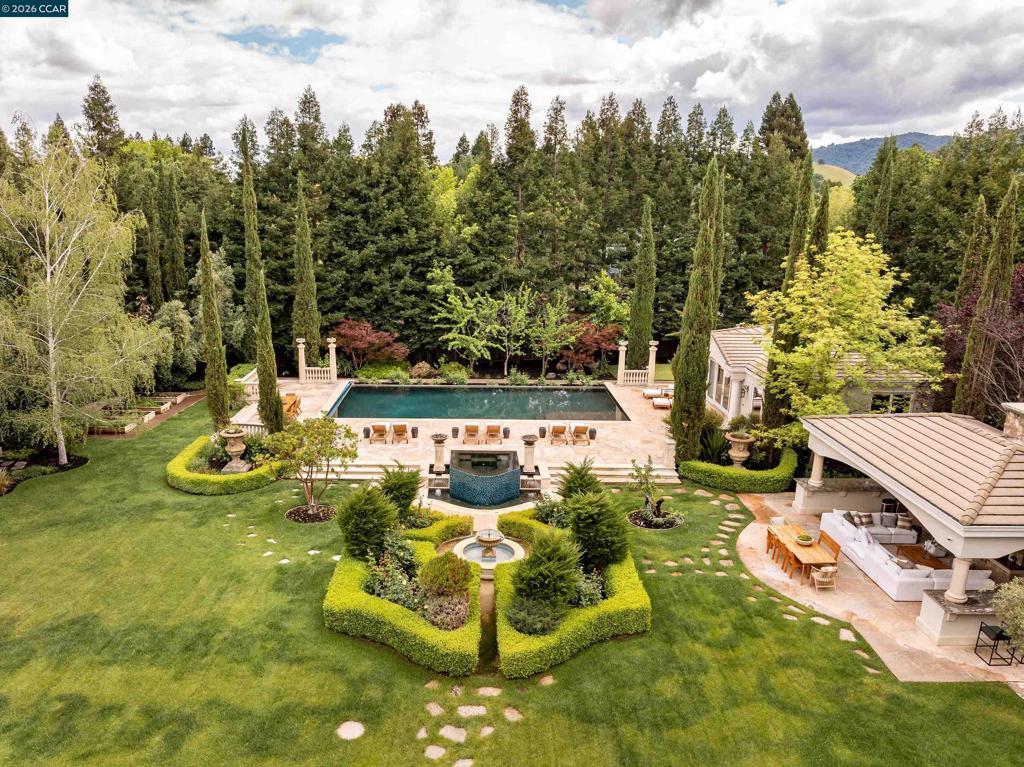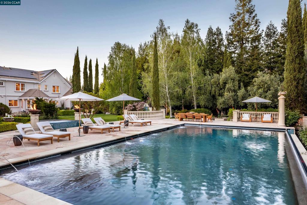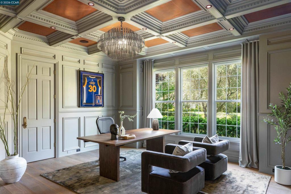 Warriors’ superstar Steph Curry made this estate his home; now it can be yours. Its heart is the expansive open-concept kitchen and family room. The kitchen offers elite appliances, quartzite countertops, a butler’s pantry, an island with seating for 4, and a breakfast nook with garden views seating 6 more. A striking 2-sided fireplace links the living and dining rooms. A spacious office makes work from home a pleasure. Four spacious bedrooms lie upstairs, each with en-suite baths and generous closets, centered around a large media/play room. The principal suite has a fireplace, wet bar, sitting room and 3 immense walk-in closets. The spa-inspired bath features a shower with dual shower heads, a bench, and a stand-alone soaking tub, all within the shower’s glass walls. The 5th bedroom, ideal for guests, lies downstairs, assuring privacy. The back yard is roughly a flat acre, with more than 50 redwoods, 30 Italian cypress trees, cherry trees, imported olive trees, fountains, firepit, shaded lounge areas, putting green, playhouse, and stunning entertainment pavilion with fireplace, heaters, fans, and grill. A pool house offers another bedroom, 2 full baths, kitchen, laundry and sauna. The 6-car garage and motor court provide abundant parking.
