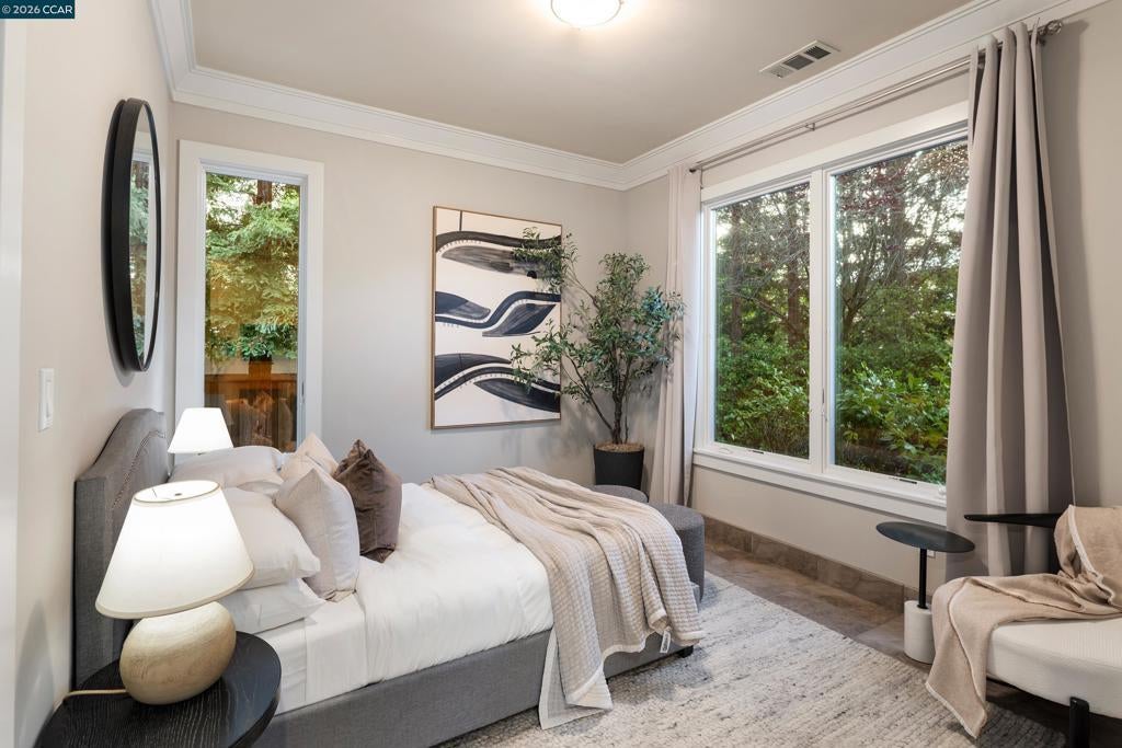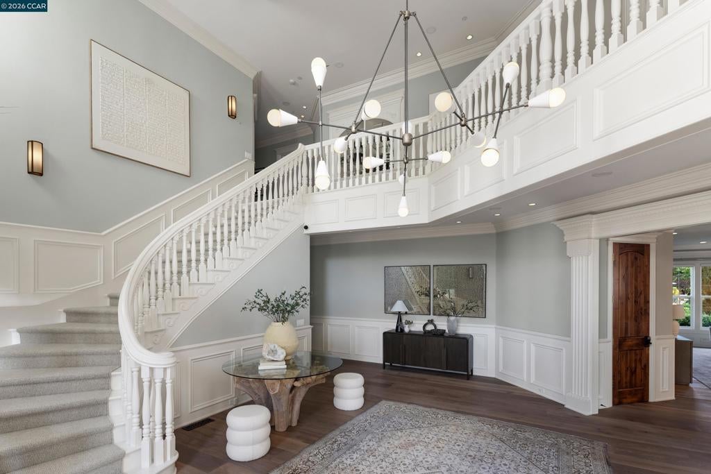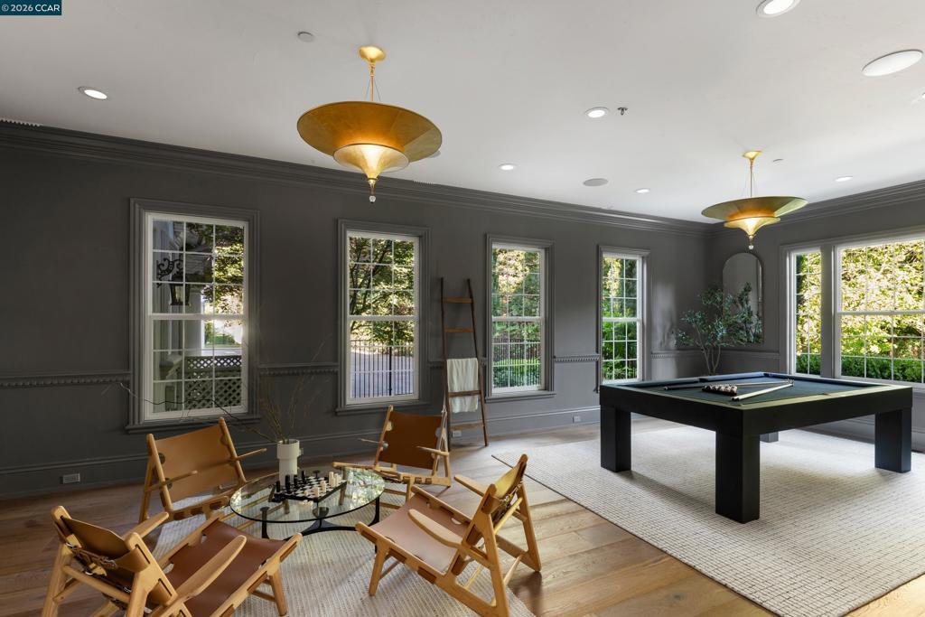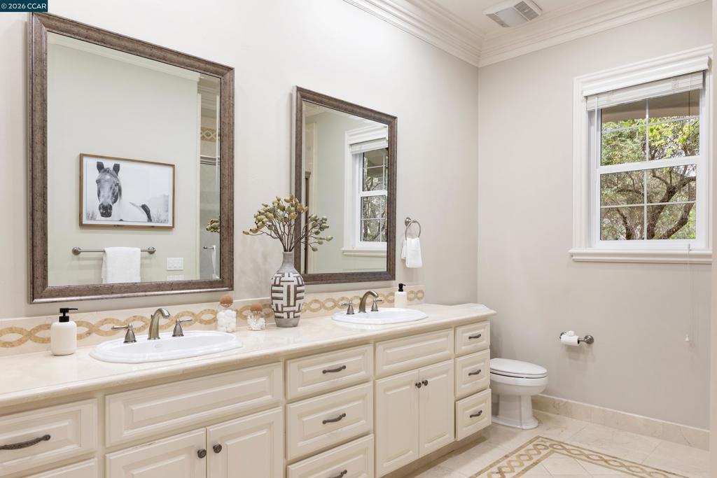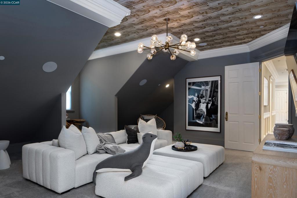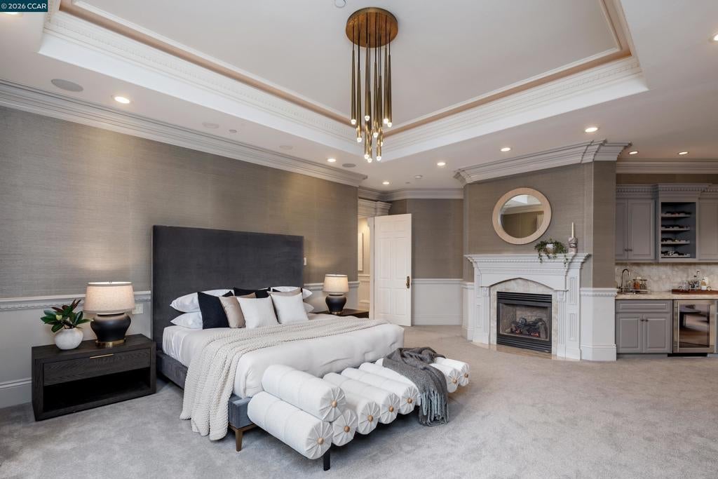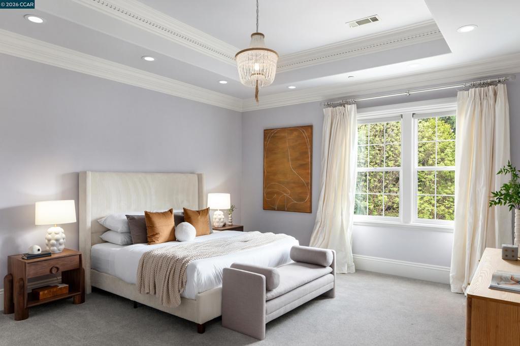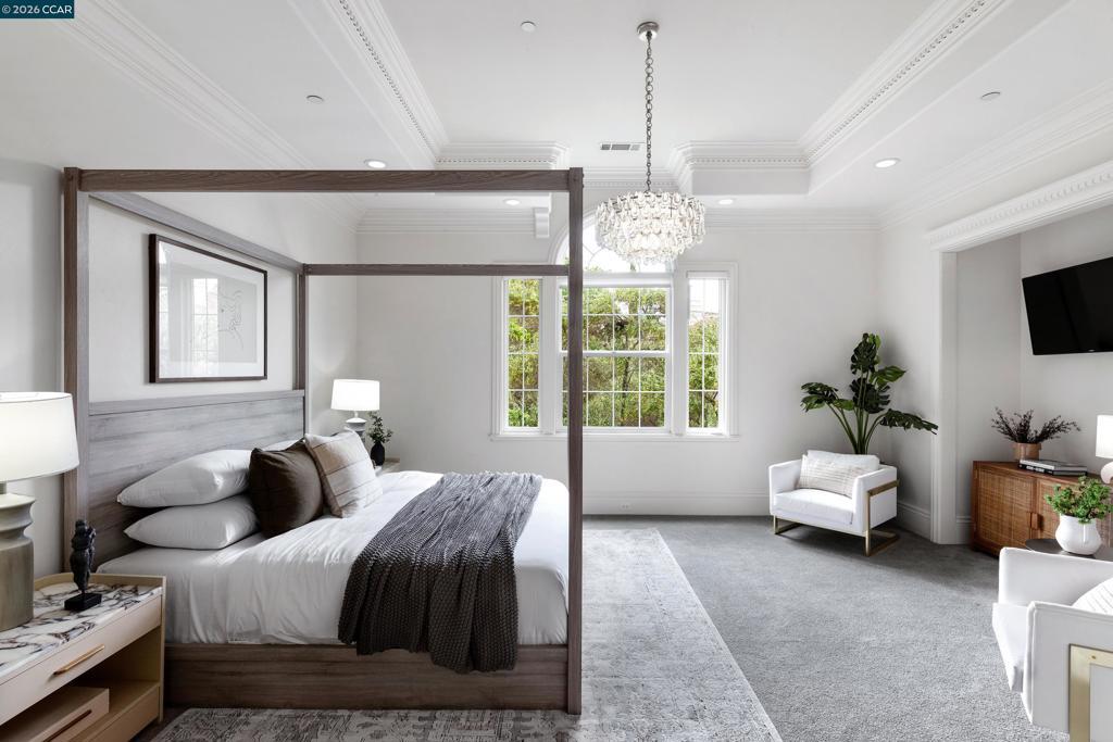Warriors’ superstar Steph Curry made this estate his home; now it can be yours. Its heart is the expansive open-concept kitchen and family room. The kitchen offers elite appliances, quartzite countertops, a butler’s pantry, an island with seating for 4, and a breakfast nook with garden views seating 6 more. A striking 2-sided fireplace links the living and dining rooms. A spacious office makes work from home a pleasure. Four spacious bedrooms lie upstairs, each with en-suite baths and generous closets, centered around a large media/play room. The principal suite has a fireplace, wet bar, sitting room and 3 immense walk-in closets. The spa-inspired bath features a shower with dual shower heads, a bench, and a stand-alone soaking tub, all within the shower’s glass walls. The 5th bedroom, ideal for guests, lies downstairs, assuring privacy. The back yard is roughly a flat acre, with more than 50 redwoods, 30 Italian cypress trees, cherry trees, imported olive trees, fountains, firepit, shaded lounge areas, putting green, playhouse, and stunning entertainment pavilion with fireplace, heaters, fans, and grill. A pool house offers another bedroom, 2 full baths, kitchen, laundry and sauna. The 6-car garage and motor court provide abundant parking.