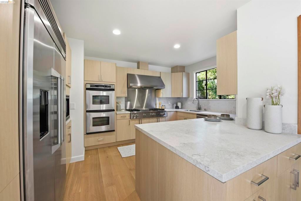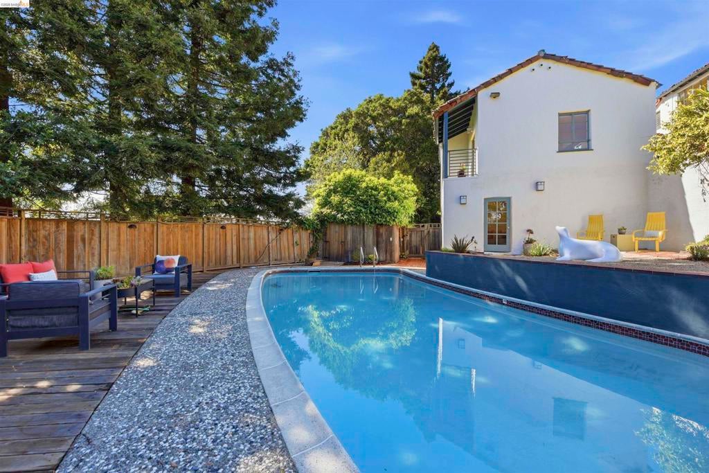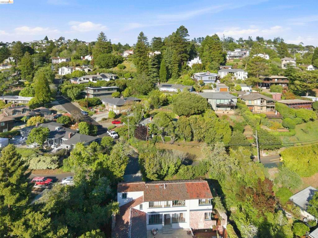 Magnificent Mediterranean villa, thoughtfully reimagined with extensive remodeling and lush landscaping, set in the desirable Kensington Hills. This exceptional estate offers 6+ bedrooms and 3+ bathrooms on a large, private, and secluded lot, complete with a serene courtyard and sparkling pool. The beautifully remodeled kitchen features new custom cabinetry, honed stone countertops, and high-end appliances, seamlessly connecting to a formal dining room and a bright, inviting breakfast area. A grand living room with soaring cathedral ceilings and a fireplace creates an impressive yet comfortable gathering space. Upstairs, the luxurious primary suite offers stunning Bay views, built-in bird’s-eye maple desks, and a spa-like bathroom with both a soaking tub and separate shower. An adjoining room provides the perfect space for a nursery, office, or retreat, along with convenient laundry access. The lower levels include five additional bedrooms, two bathrooms, a wine cellar, a secondary laundry room, abundant storage, and direct access to expansive decks and the tranquil pool area—ideal for indoor-outdoor living. Located just minutes from charming Kensington Village and the beautiful Blake Gardens, this home offers a rare blend of privacy, elegance, and convenience.