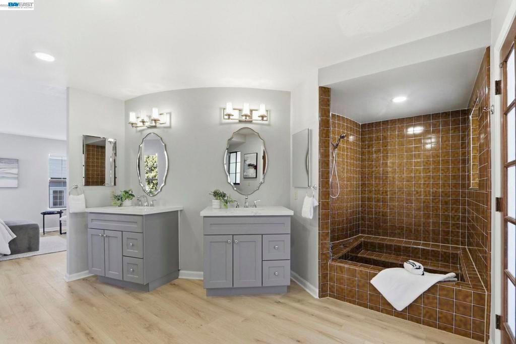 Rare Tudor Manor End Unit Townhouse | Fully Remodeled | Prime Sunnyvale Location Rarely available Tudor Manor end unit townhouse, fully remodeled in 2026, offering modern upgrades, exceptional natural light, and a highly desirable floor plan. This two story end unit features high ceilings, recessed lighting, and stylish laminate flooring throughout, creating a bright and elegant living environment. The open concept layout includes a spacious living room flowing seamlessly into a formal dining area, perfect for entertaining. The family room opens to a private patio/backyard, ideal for enjoying morning coffee, outdoor dining, or an herb garden. Upstairs, a versatile nook provides the perfect home office or work from home space. The luxurious primary suite boasts a spa inspired bathroom with an expansive walk in shower, double sinks, vanity, and a large walk in closet. The second en suite bedroom is spacious and features its own private balcony, offering privacy and outdoor enjoyment. Located in a highly sought after Sunnyvale neighborhood, just minutes to Downtown Sunnyvale (5 minute drive) and Downtown Mountain View (6 minute drive). Low $250 HOA. Excellent commute location near major tech companies with easy access to Highways 85, 101, and 237. Situated in the Homestead High School district. This move in ready townhouse is a rare opportunity—don’t miss this exceptional home!