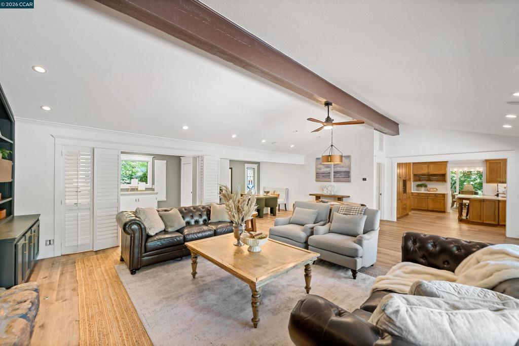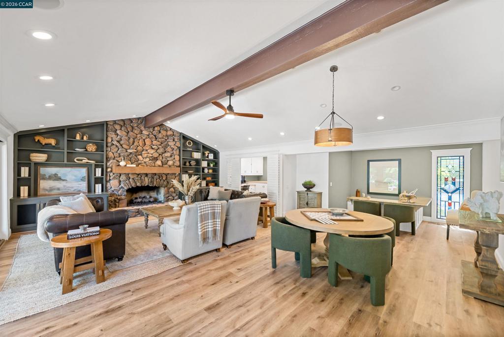 Nestled near the prestigious Round Hill Country Club, this stunning Traditional 4 bedroom plus office, 4 bathroom, 3,734 square foot home blends timeless elegance with everyday comfort. Thoughtfully designed with an expansive, functional floor plan, it offers beautiful yard views from nearly every room—ideal for entertaining and daily living. A charming garden entry welcomes you into light-filled interiors with soaring ceilings, custom lighting, and expansive windows. The dramatic living room features a striking fireplace, while the adjacent dining room offers vaulted ceilings and seamless access to the kitchen. The remodeled kitchen impresses with a large island, bar peninsula, office nook, and ample cabinetry. A sunny breakfast nook with brick fireplace, built-in bar, and French doors opens to the backyard and adjoining family room. The spacious primary suite is a private retreat with yard access, vaulted ceilings, and a walk-in closet. The luxurious bath includes dual vanities, an oversized shower, soaking tub, and skylight. The beautifully landscaped yard offers a deck with BBQ island, pool, spa, fire pit, and serene privacy. Ideally located near Roundhill Country Club, Downtown Alamo, Top Alamo schools, hiking/biking trails, parks and easy commuter access.