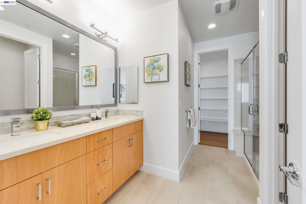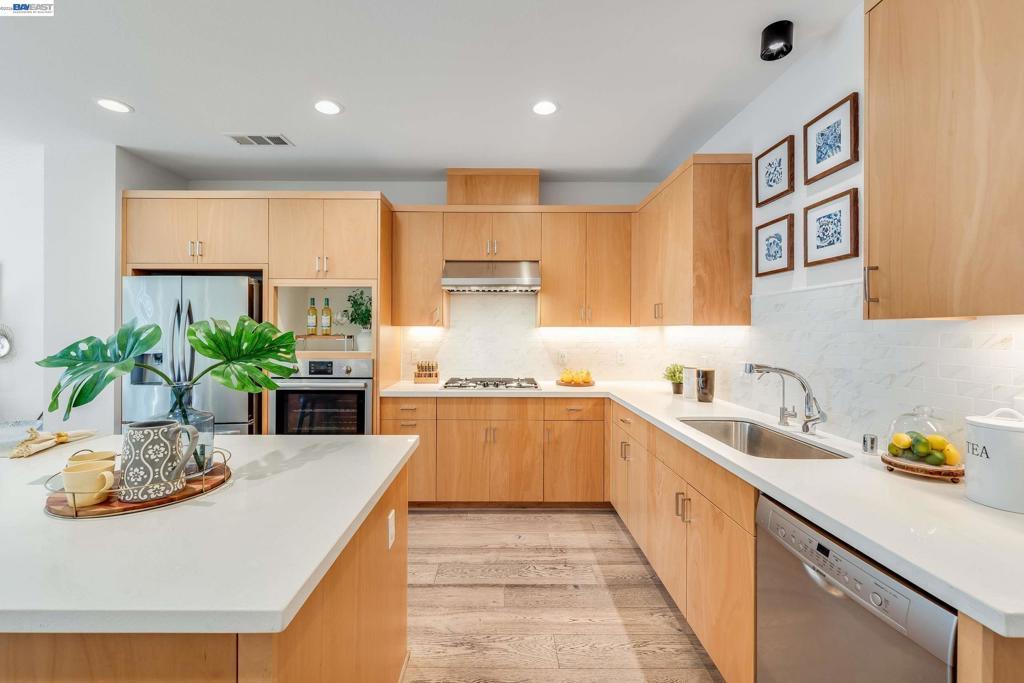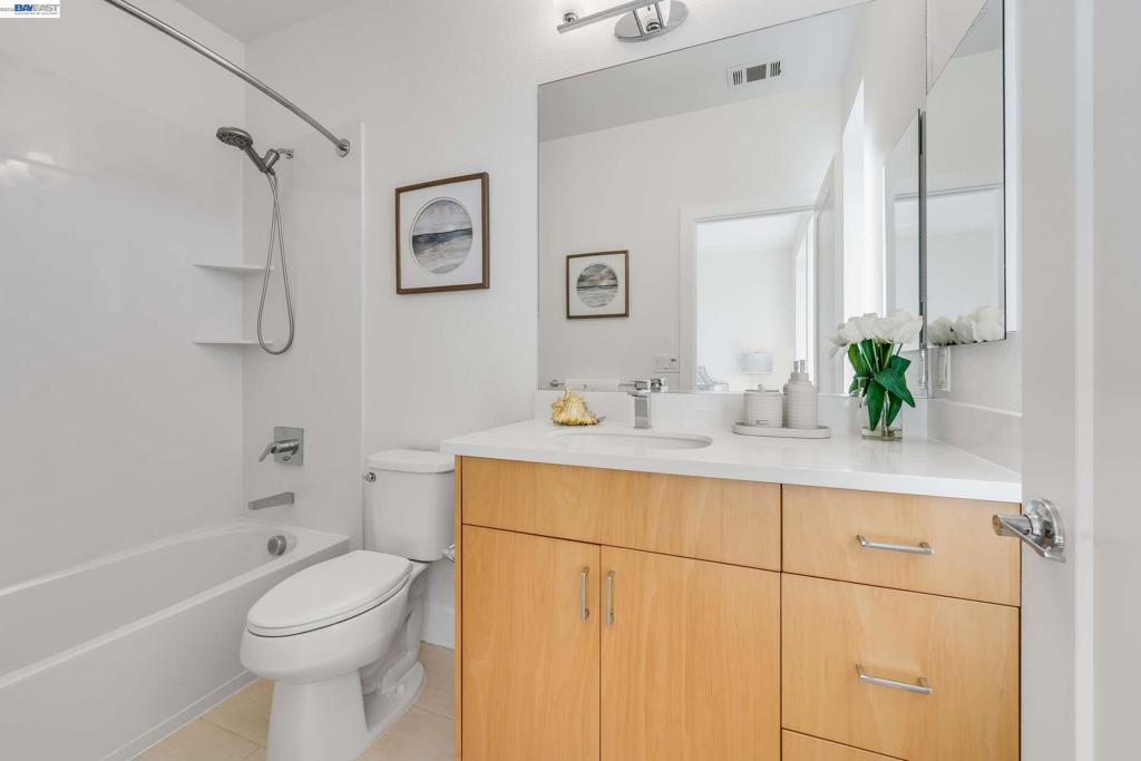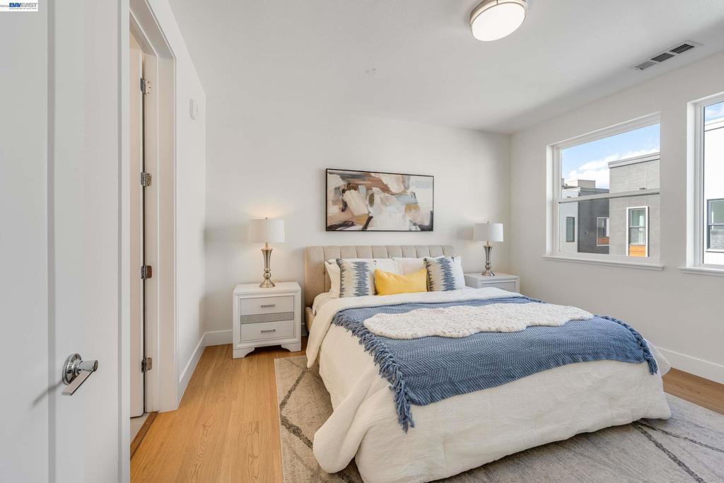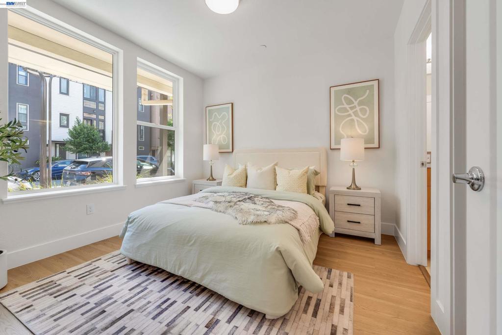 Sun-filled metropolitan living at its best! Welcome to this beautifully refreshed Locale Row House set in one of the community's most desirable interior-facing locations. The bright and light home also enhanced by hard surfaced floorings through-out, high baseboards, updated light fixtures, and brand-new custom two-tone interior paint. A rare 4 Beds | 4 Baths layout offers exceptional flexibility, including three private suites and a main-level bedroom adjacent to a full bath - ideal for guests, a home office, or multigenerational living. The spacious primary suite features dual vanities, a large shower, and a walk-in closet with built-in shelving. An in-unit laundry closet and two private balconies add everyday comfort, while vibrant Downtown Fremont, coffee shops, dining, shopping, Fremont BART, I-880, and Highway 84 are all just moments away. Distinctive Highlights: Premium interior-facing location with abundant afternoon natural light and a more open outlook. Rare 4 Beds | 4 Baths layout with three private suites, plus a main-level bedroom next to a full bath for guests, office use, or multigenerational living. Approx. 1,801 sq ft, HOA dues approx. $355/month, and an attached side-by-side 2-car garage with EV-ready capability.